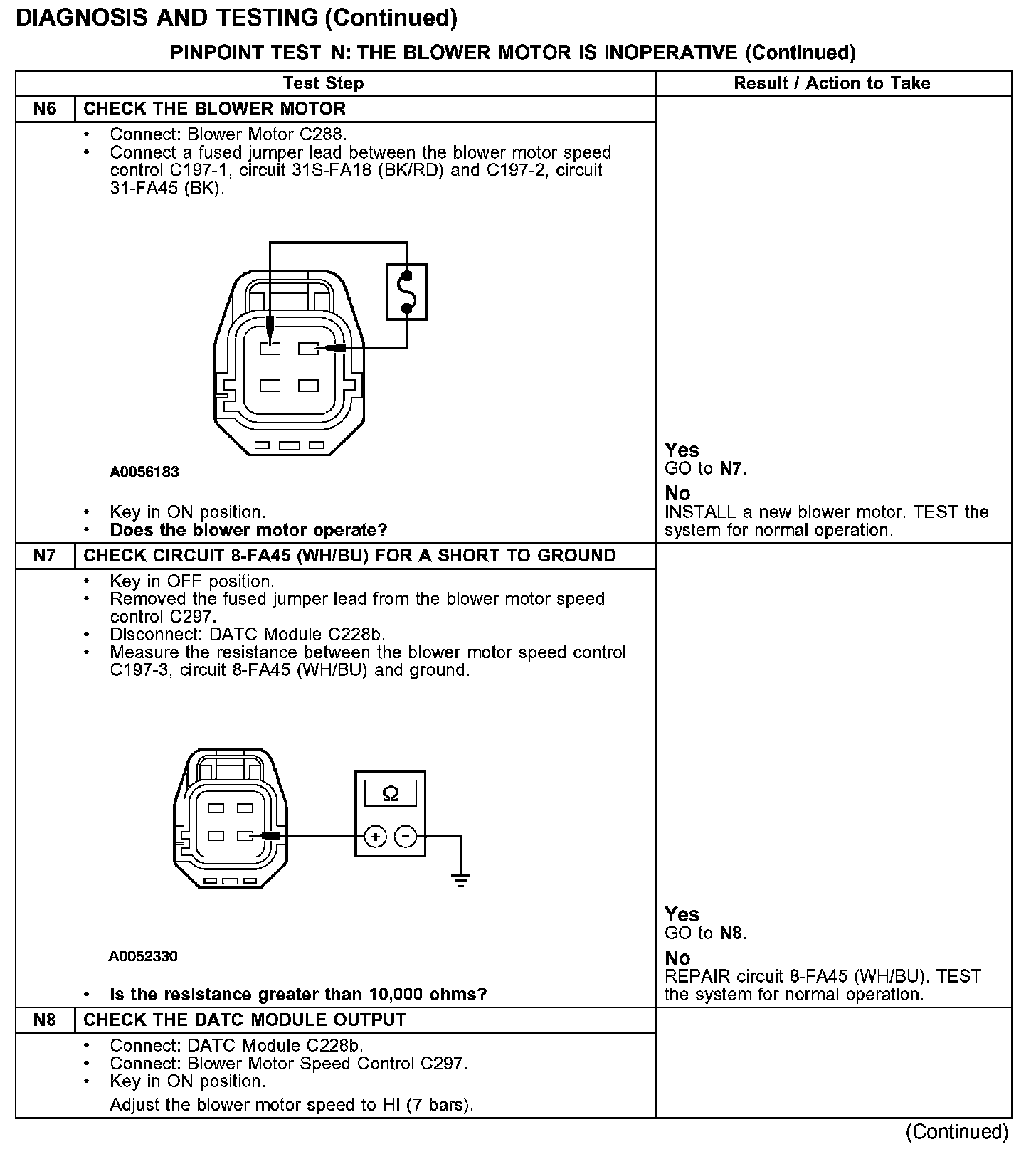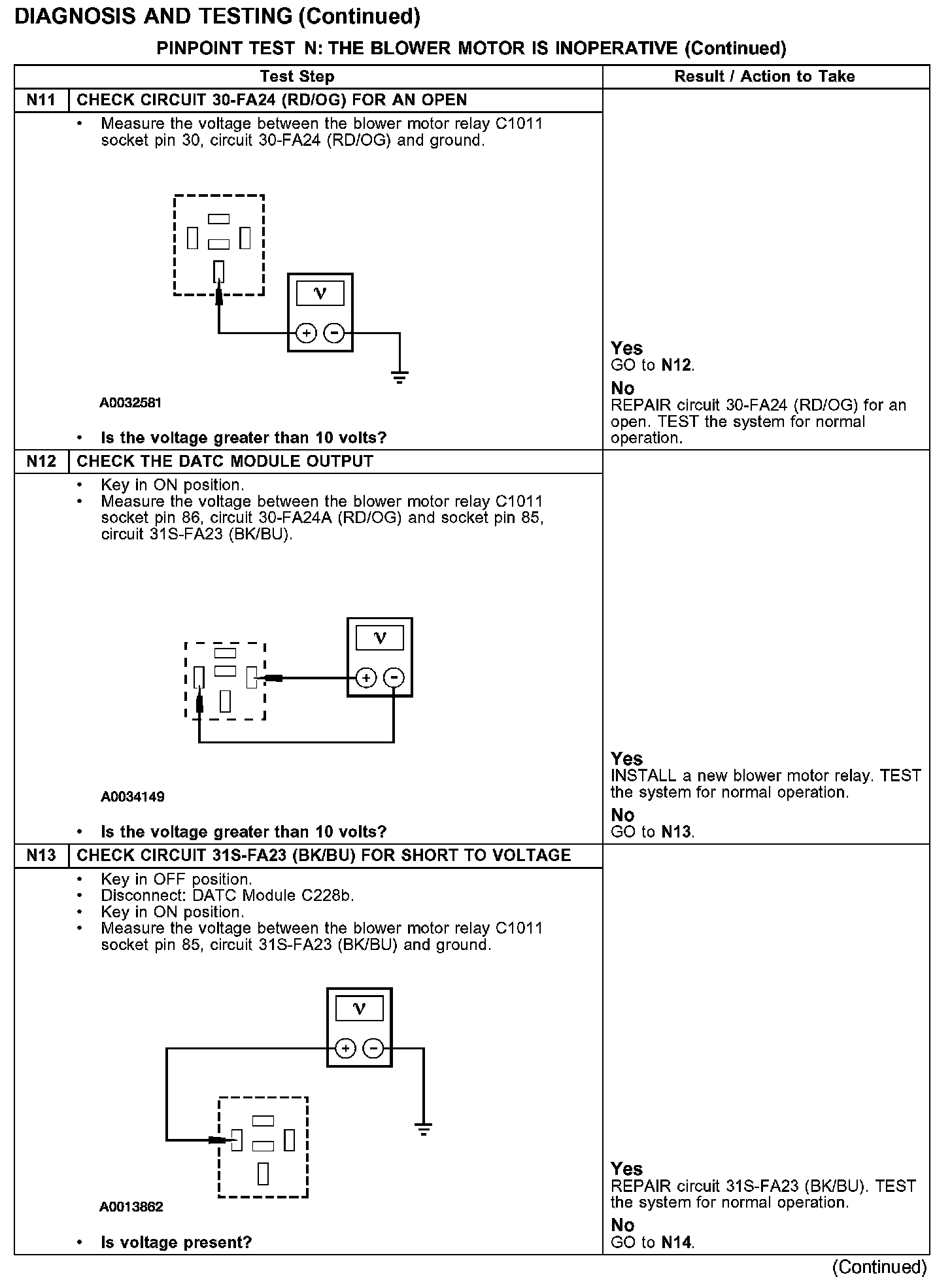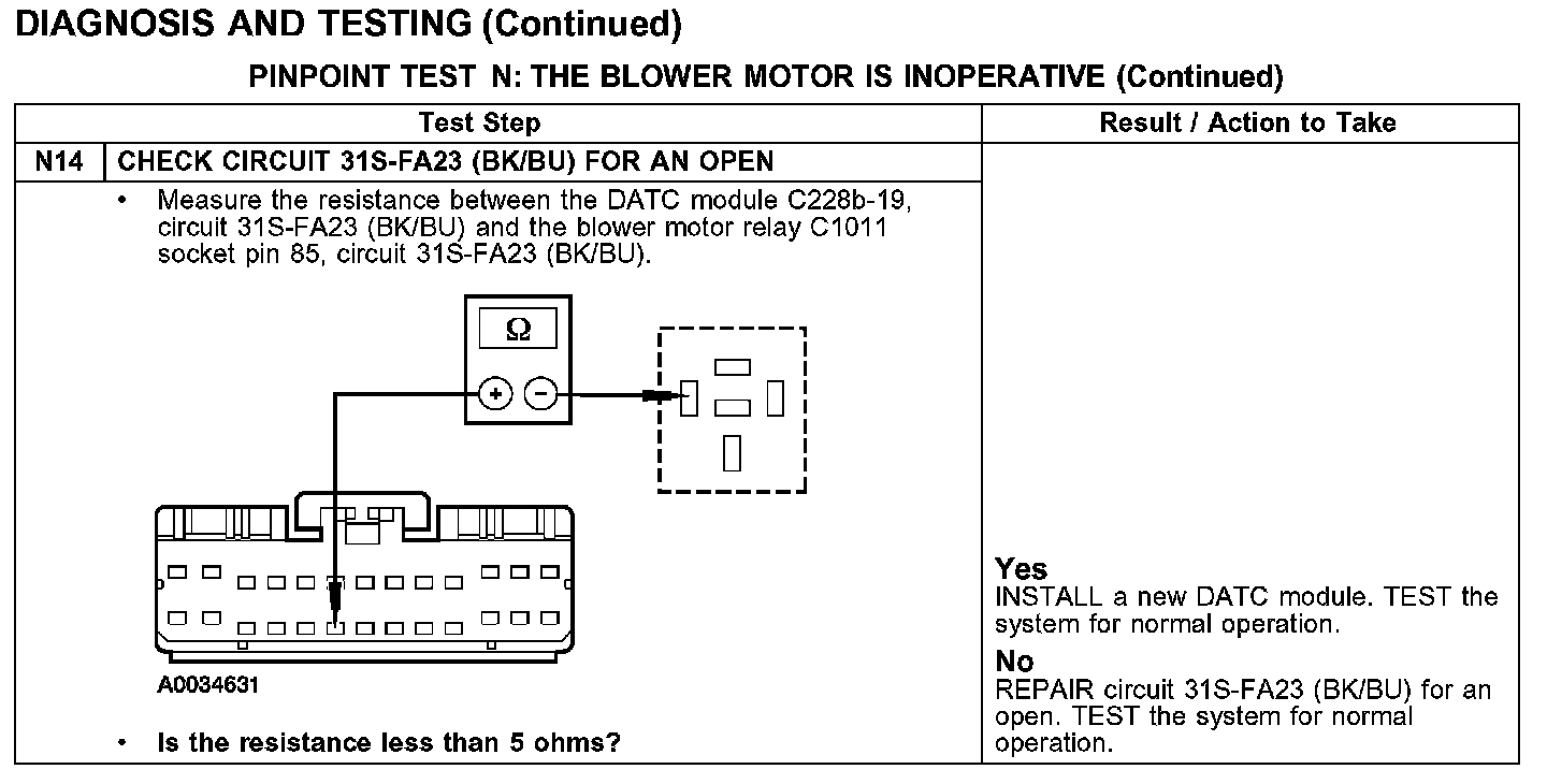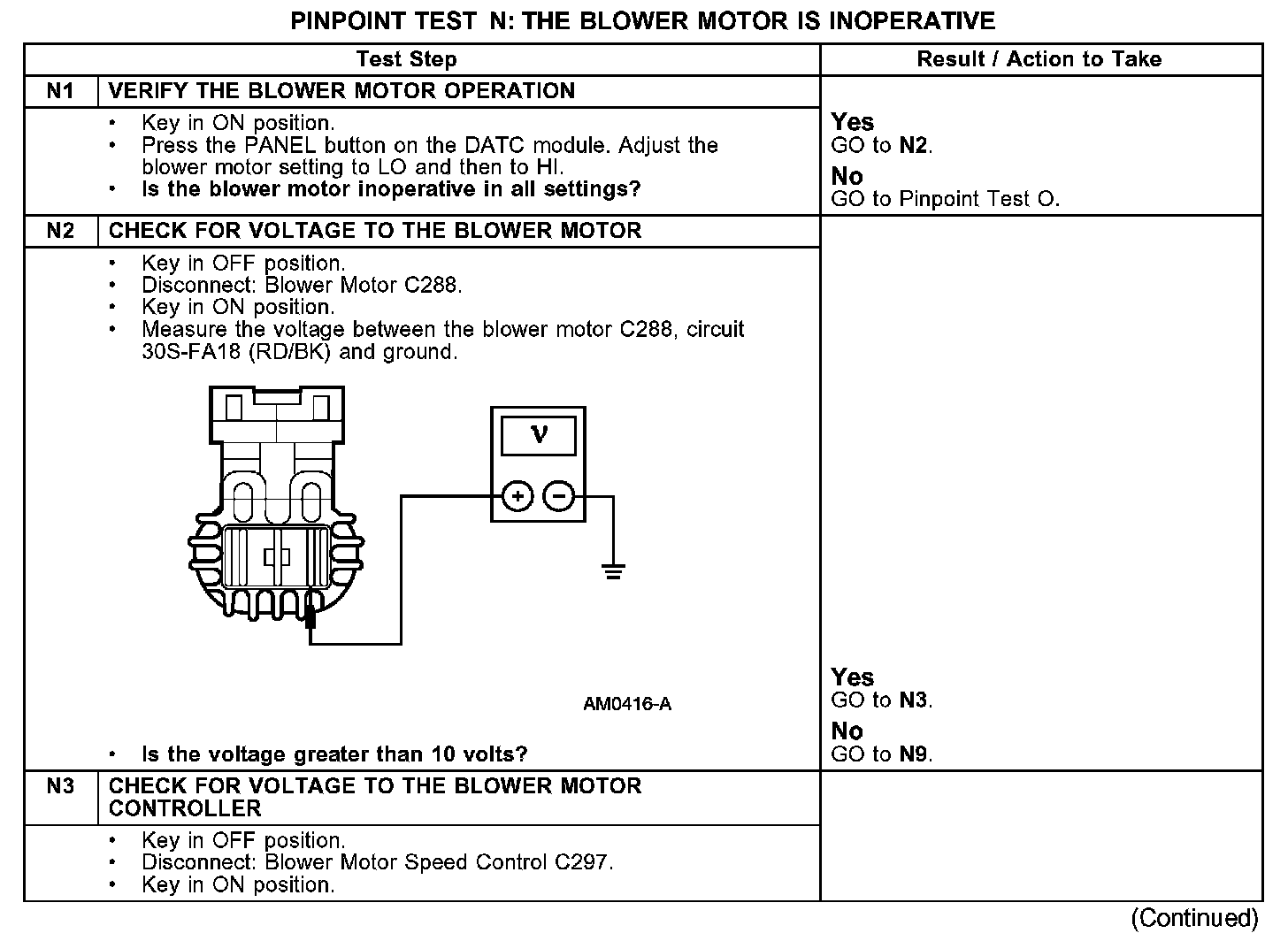 PINPOINT TEST N: THE BLOWER MOTOR IS INOPERATIVETest N1-N3:
