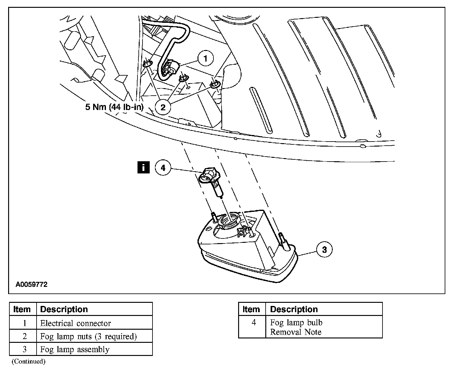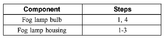1. The fog lamp bulb should not be removed from the fog lamp until just before a new bulb is installed. Removing the bulb for an extended period of time may affect fog lamp performance. Contaminants may enter the fog lamp where they can settle on the lens and reflector. Never turn on the fog lamps with the bulb removed.