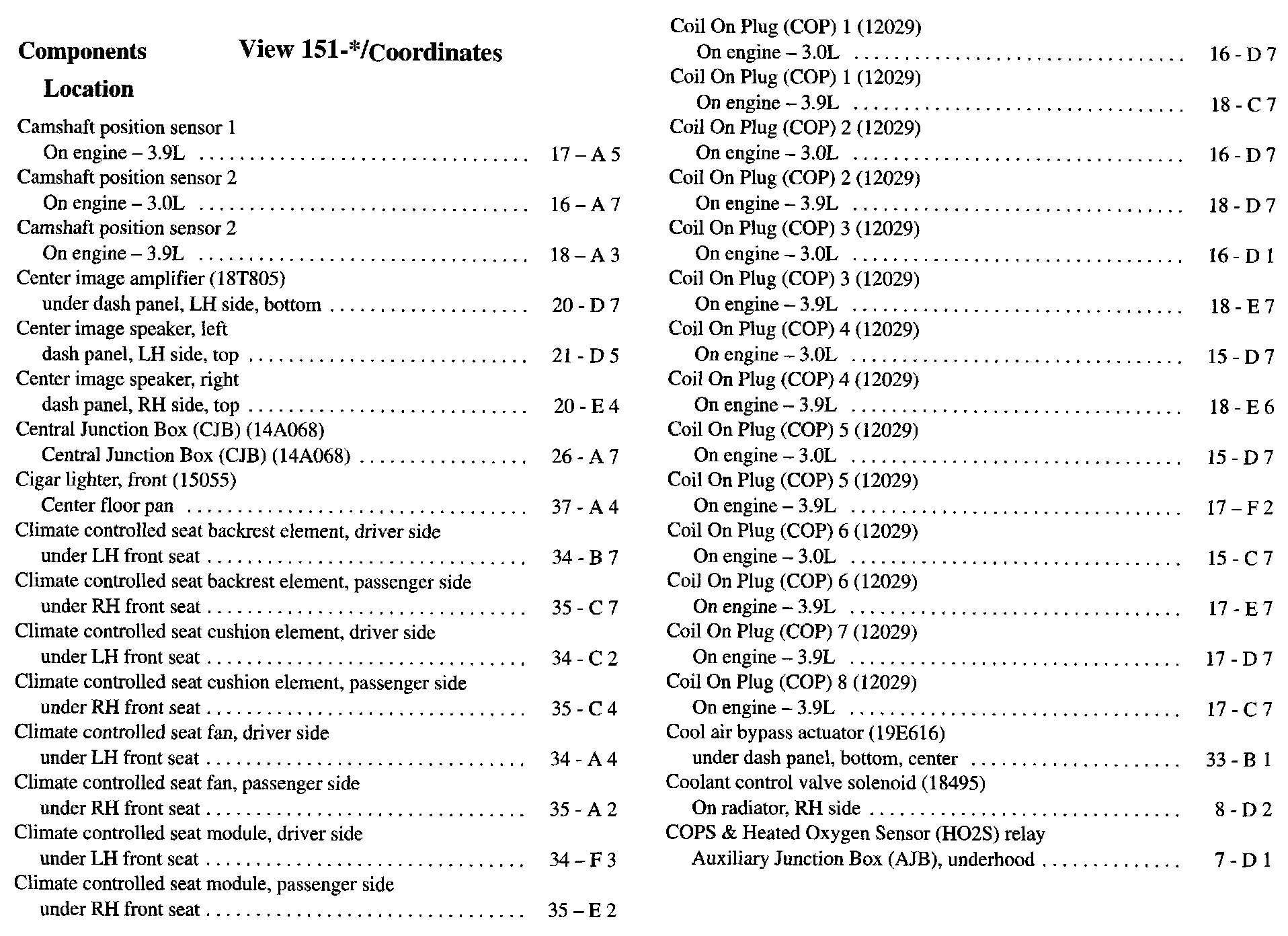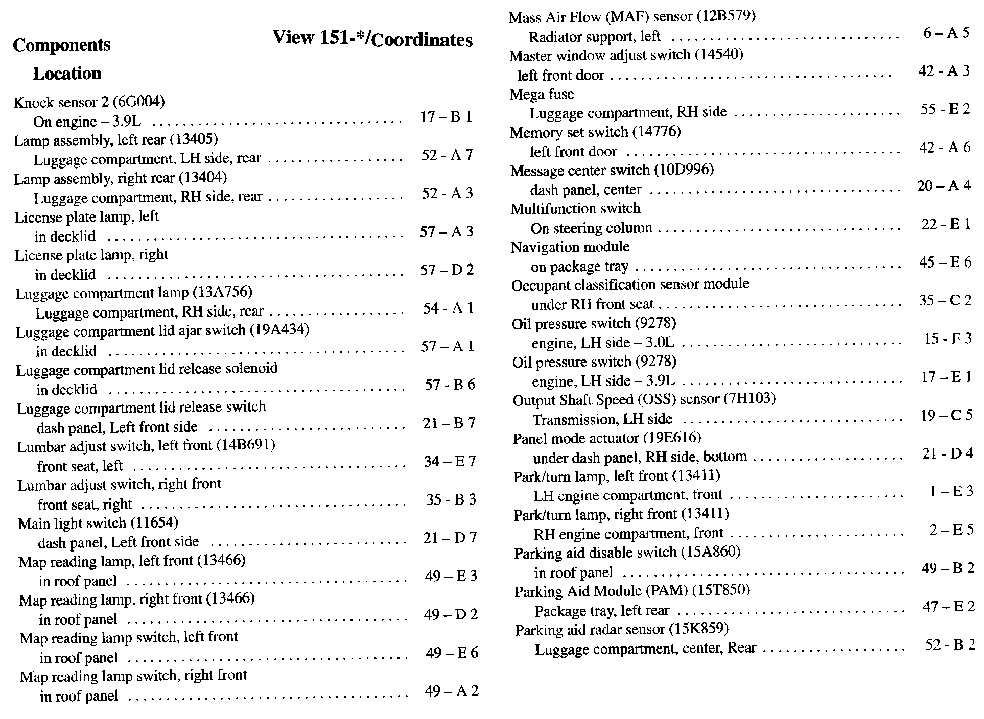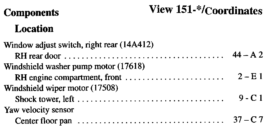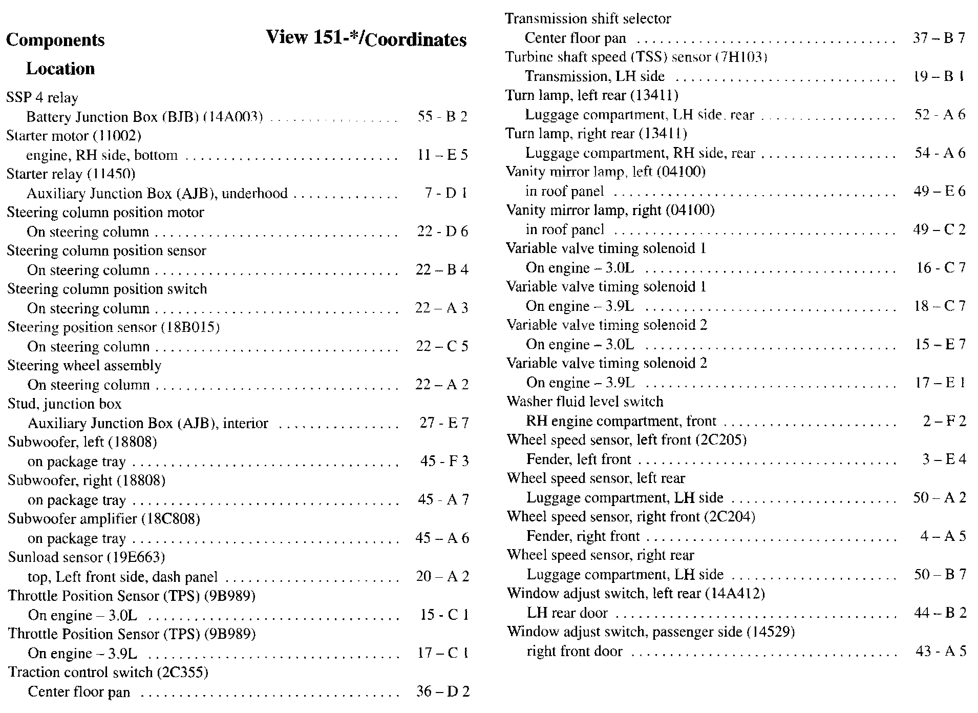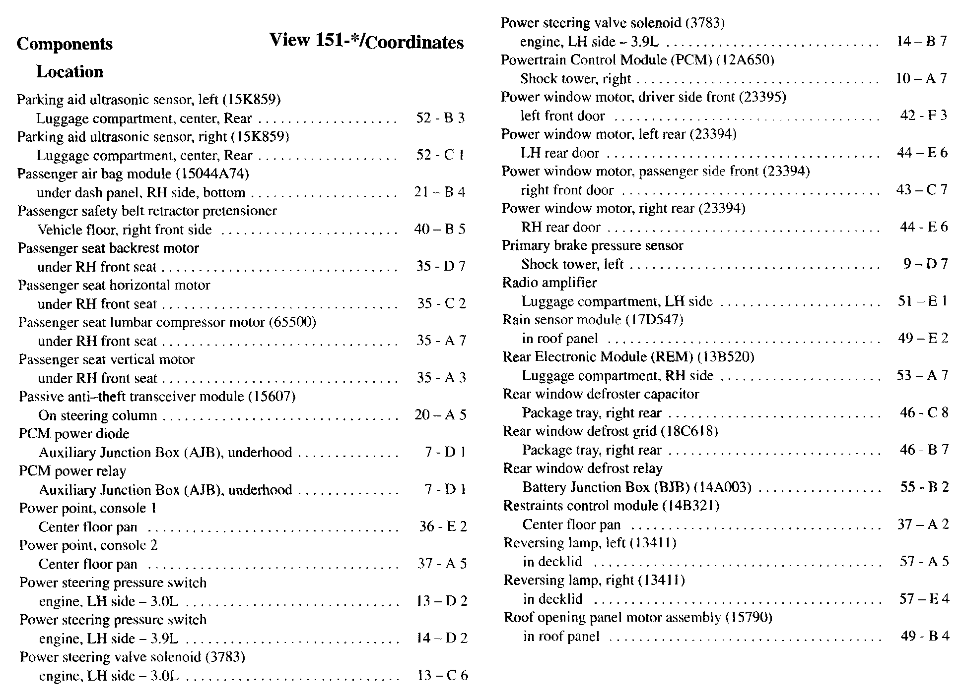 PLEASE NOTE: If a link on the Component Location Index to a View is not provided, that means that the Component and/or View in question does NOT apply to the vehicle model selected.