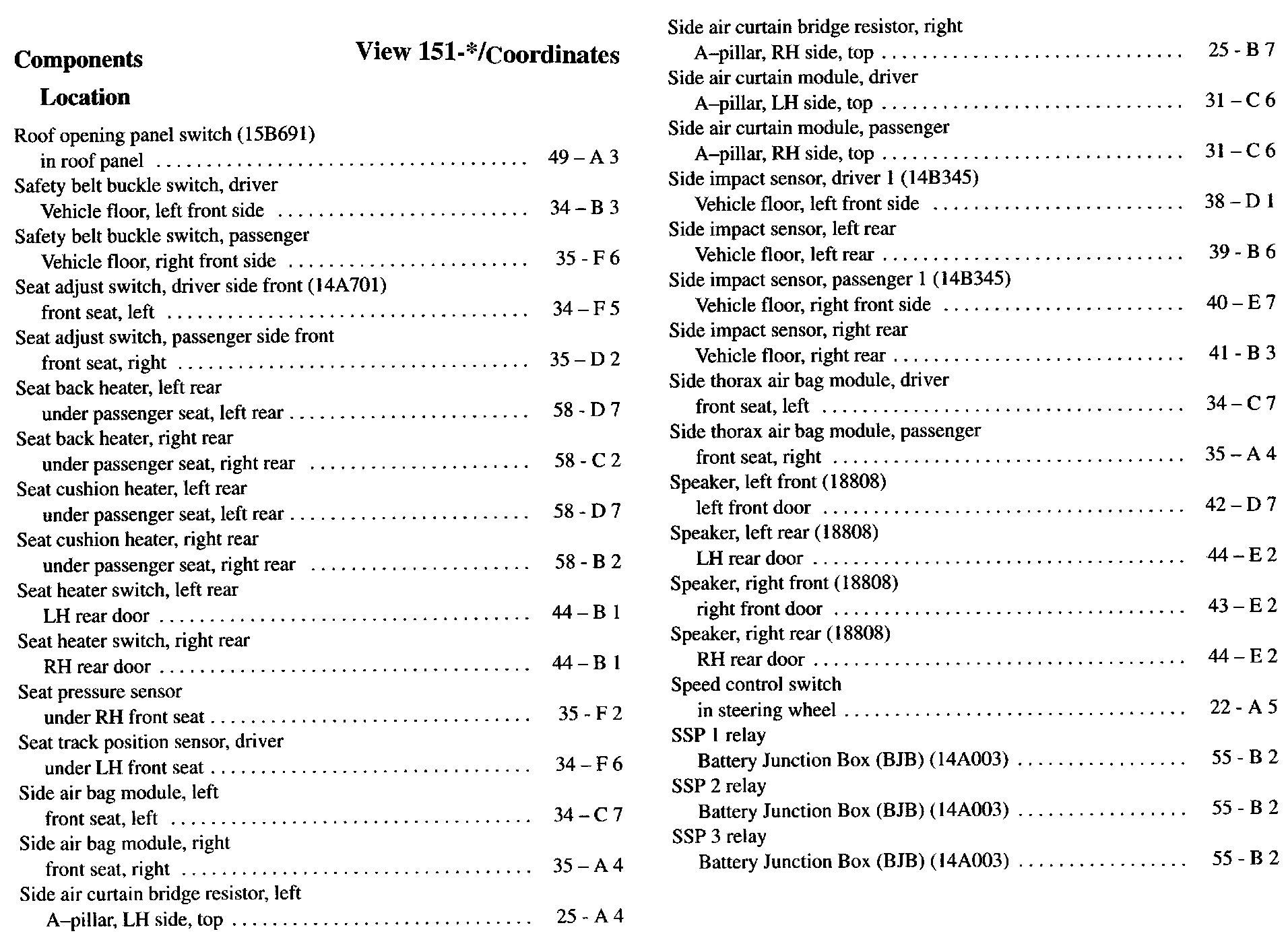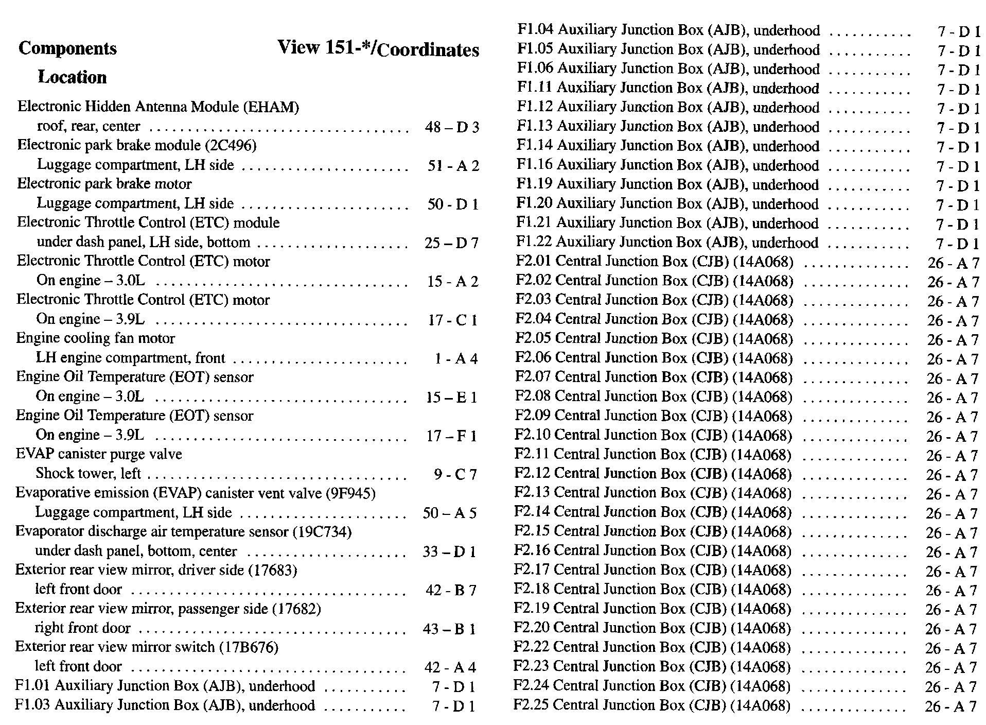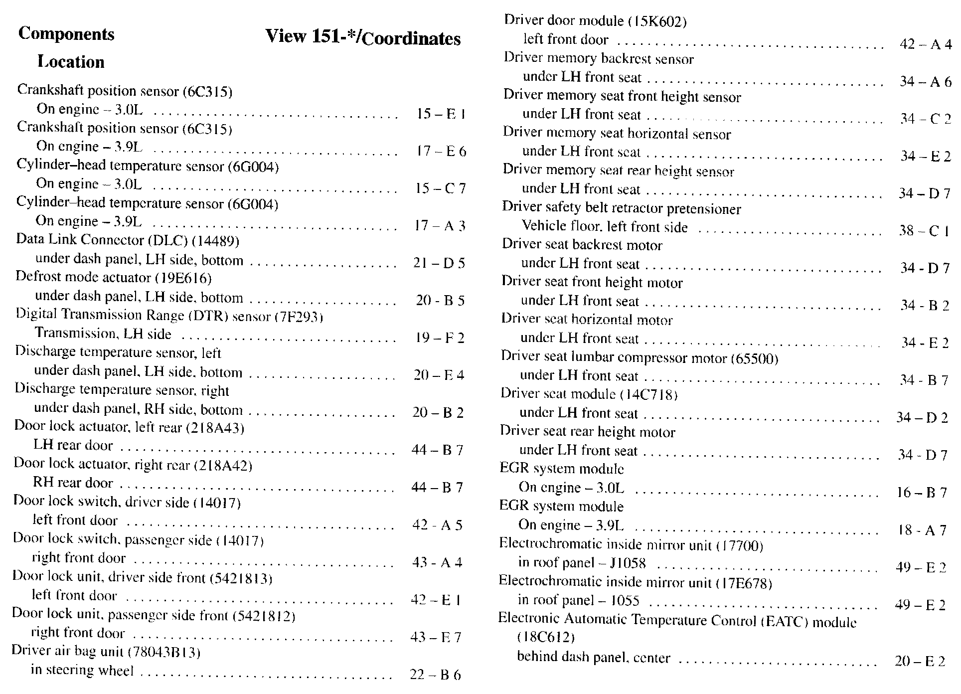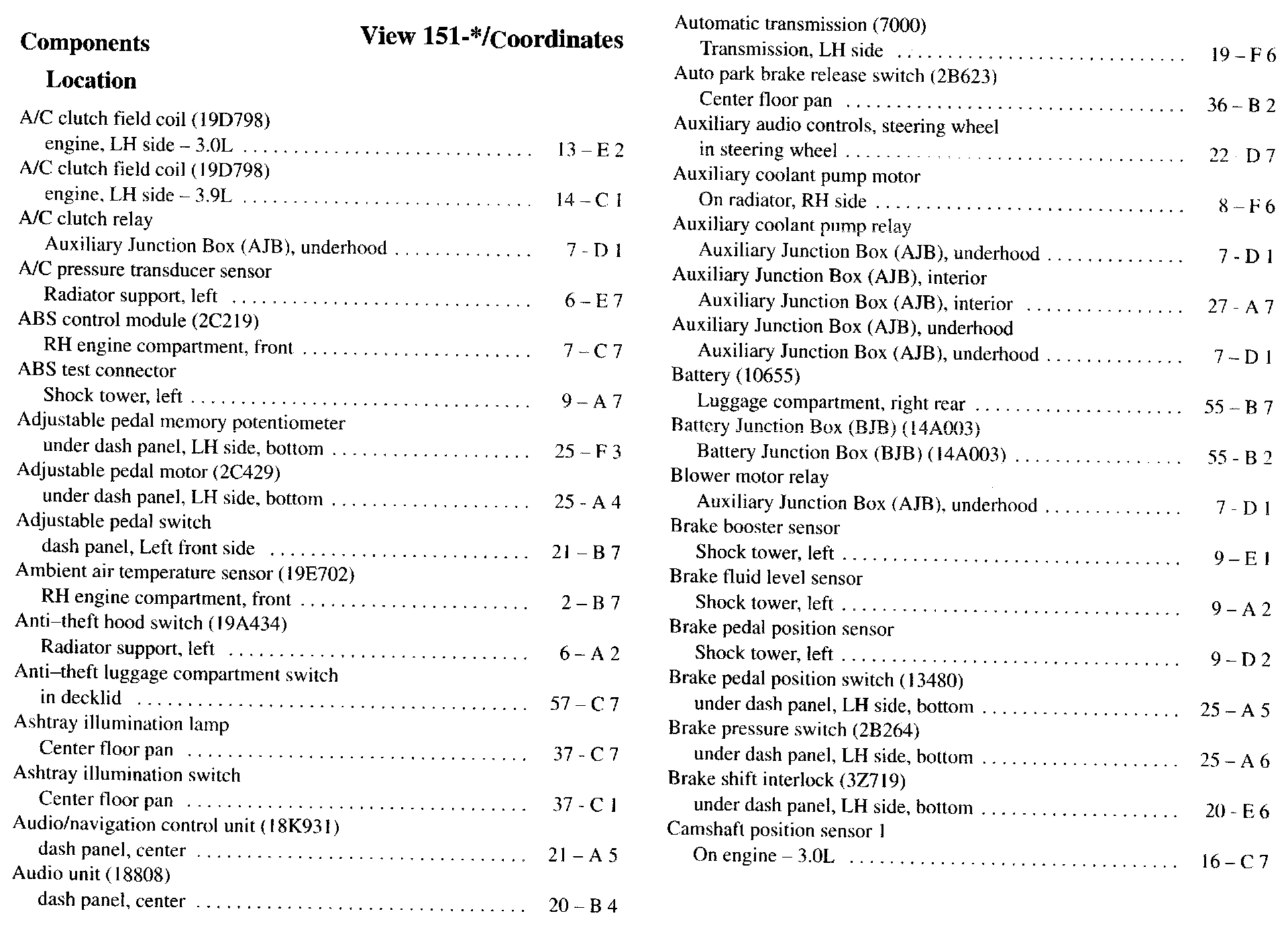 PLEASE NOTE: If a link on the Component Location Index to a View is not provided, that means that the Component and/or View in question does NOT apply to the vehicle model selected.