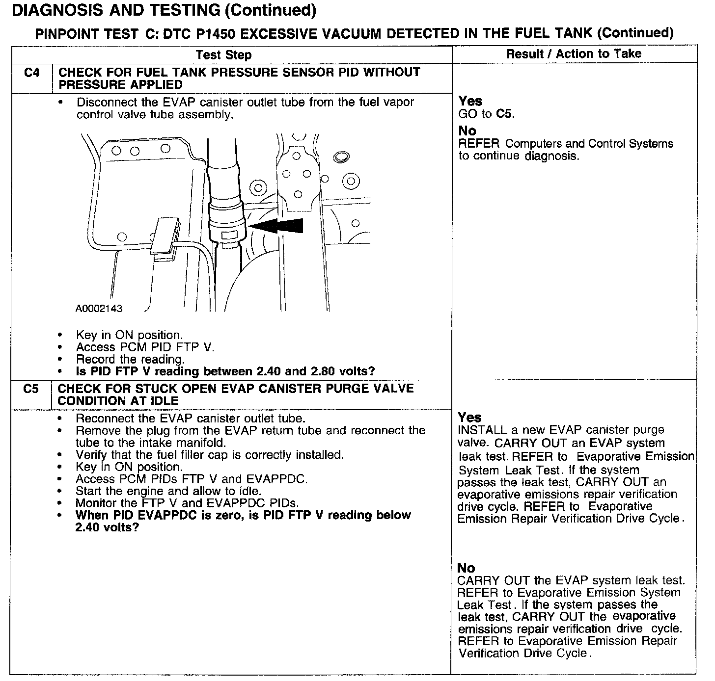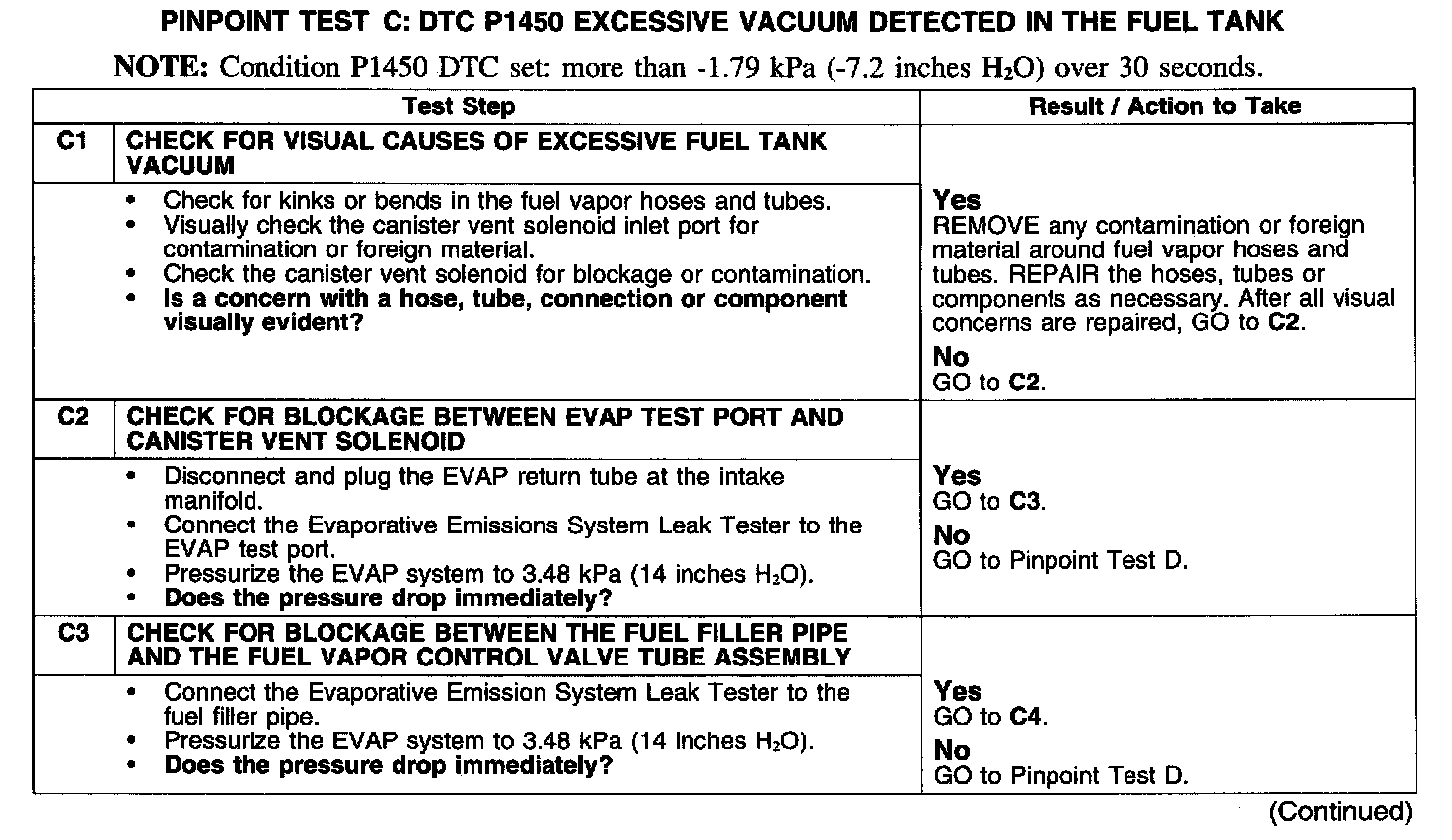 PINPOINT TEST C: DTC P1450 EXCESSIVE VACUUM DETECTED IN THE