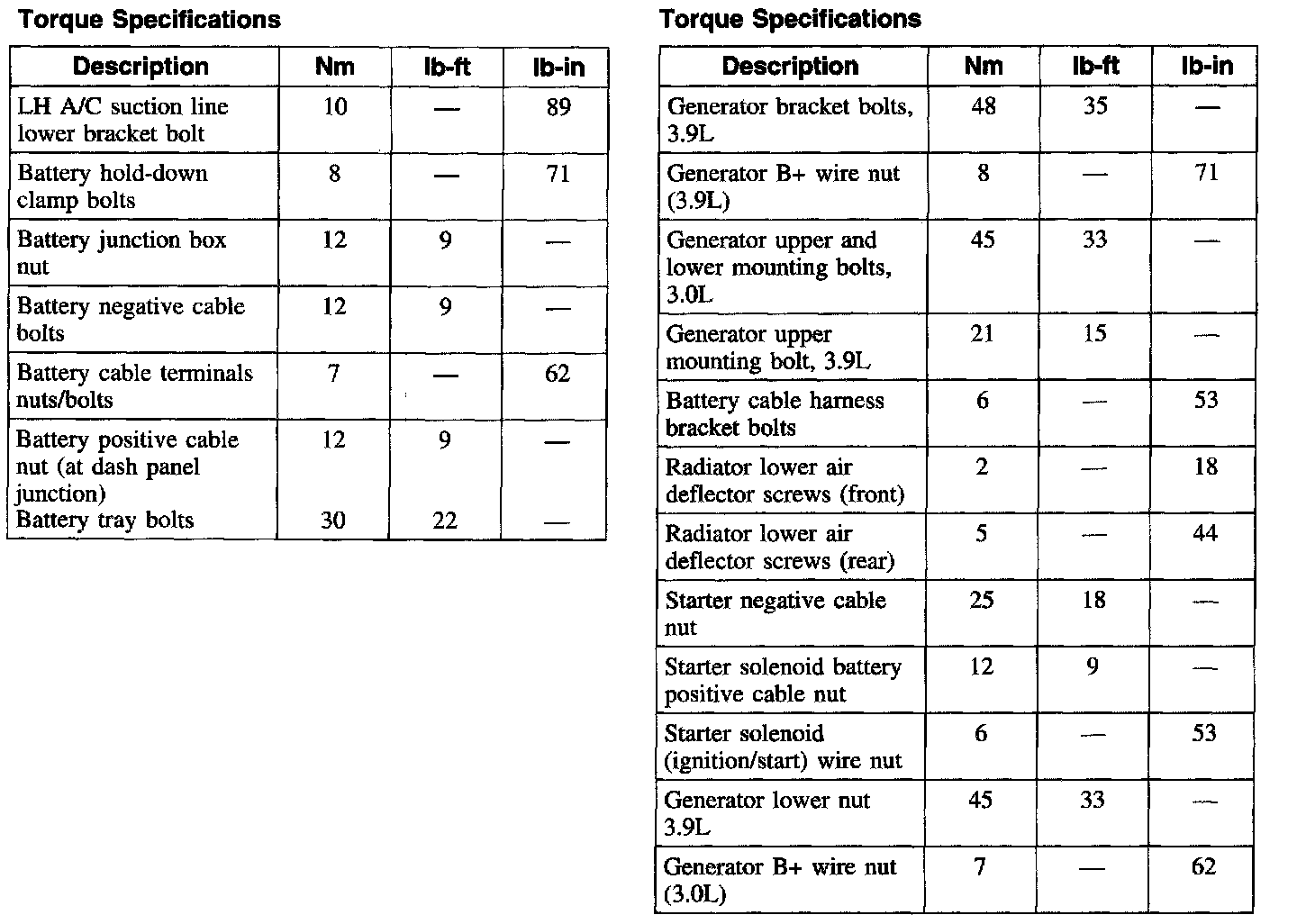 Torque Specifications: