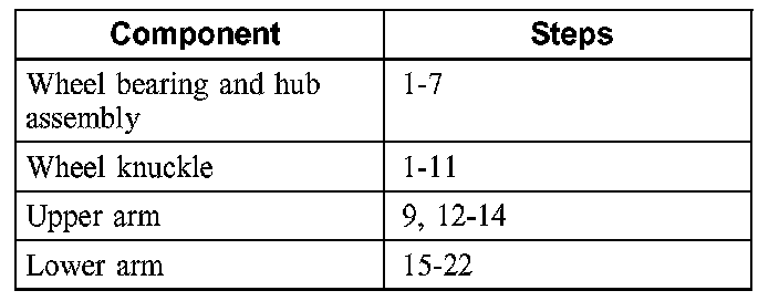 3. To remove individual suspension components, only carry out the listed steps.
