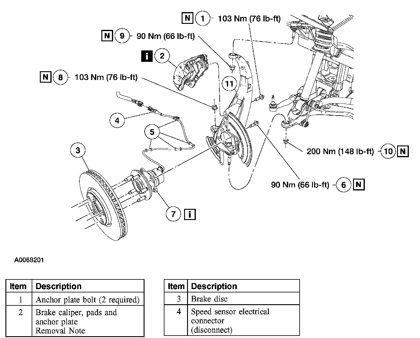 Item 2: Brake Caliper, Pads, and Anchor Plate Removal Note