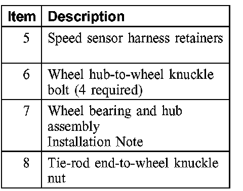 Item 7: Wheel Bearing and Hub Assembly Installation Note