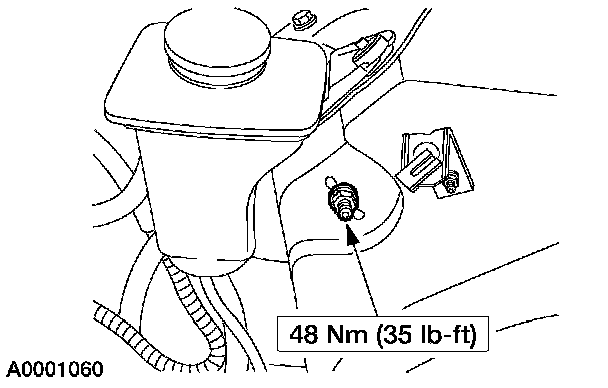 1. Remove and discard the nut. Position aside the power steering reservoir.