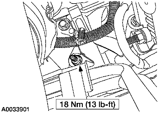 1. Install the transmission fluid cooler line bracket.