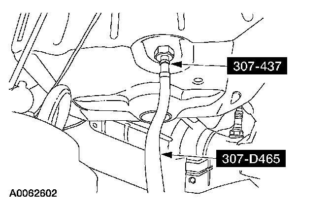 12. Apply a maximum of 206.85 kPa (30 psi) to the open end of the vacuum/pressure hose from the special tool. Fluid will immediately start flowing out of the special tool into the transmission fluid pan.