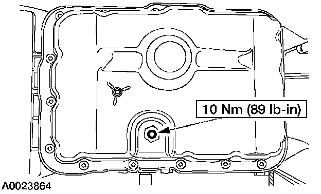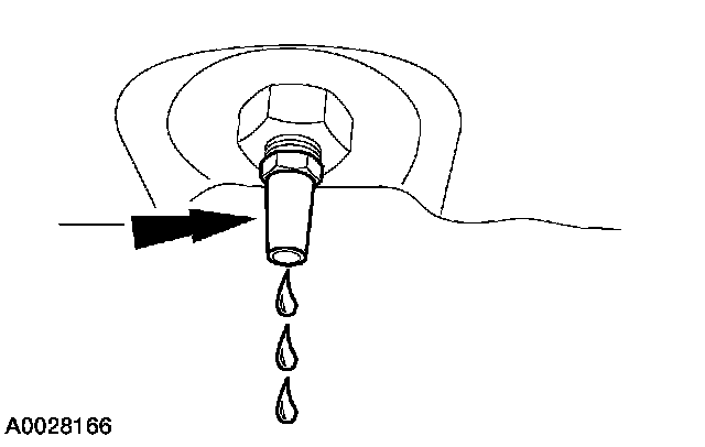 16. Allow the fluid to drain. Make sure that the fluid temperature is between 27°C - 49°C (80°F - 120°F). When the fluid comes out as a thin stream or drip, the fluid is at the correct level.
