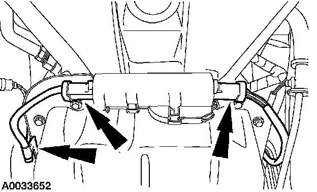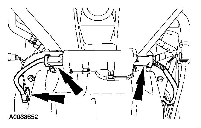 1. Disconnect the H02S connector and remove the sensor wire retaining clip from the right side of the transmission pan rail.