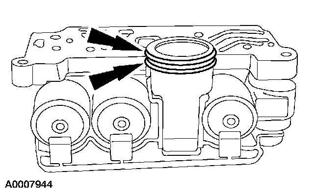 1. Install new O-ring seals on the solenoid body connector. Lubricate the O-ring seals with clean automatic transmission fluid.