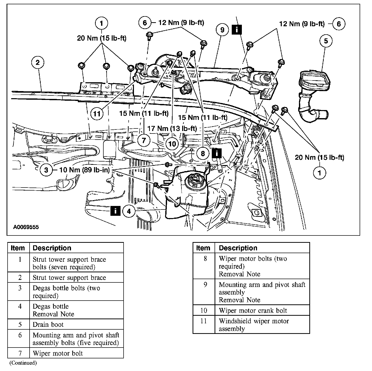 1. CAUTION: The windshield wiper system has an auto park feature. It is necessary to disconnect the battery.