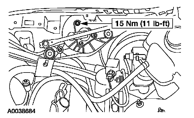 1. Position the windshield wiper mounting arm and pivot shaft assembly aside, and loosen the upper windshield wiper motor bolt.