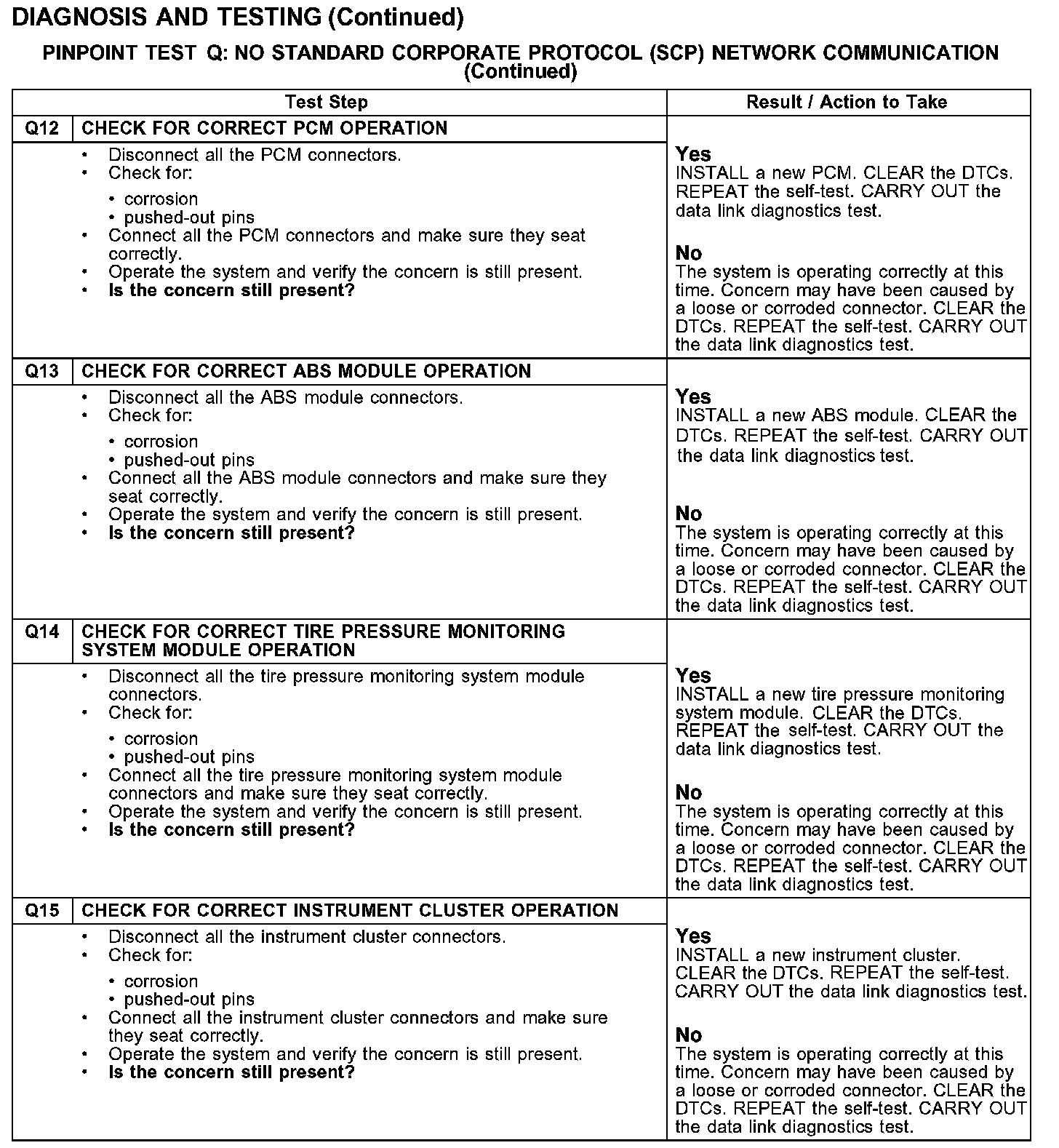 PINPOINT TEST Q: NO STANDARD CORPORATE PROTOCOL (SCP) NETWORK COMMUNICATION