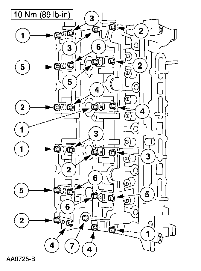 Camshaft Bearing Cap Torque and Sequence 10 Nm (89 inch lbs.)