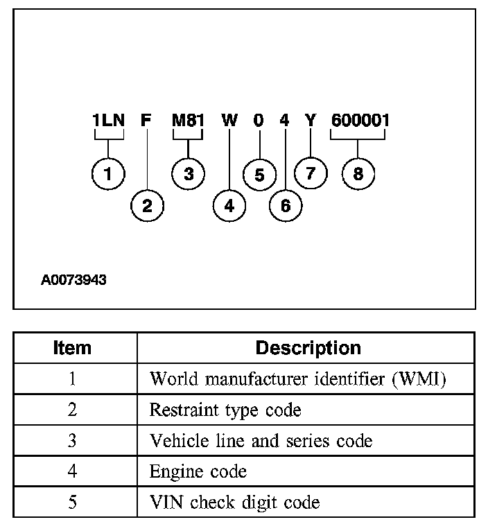 Positions 5 through 7 indicate vehicle line and series code.