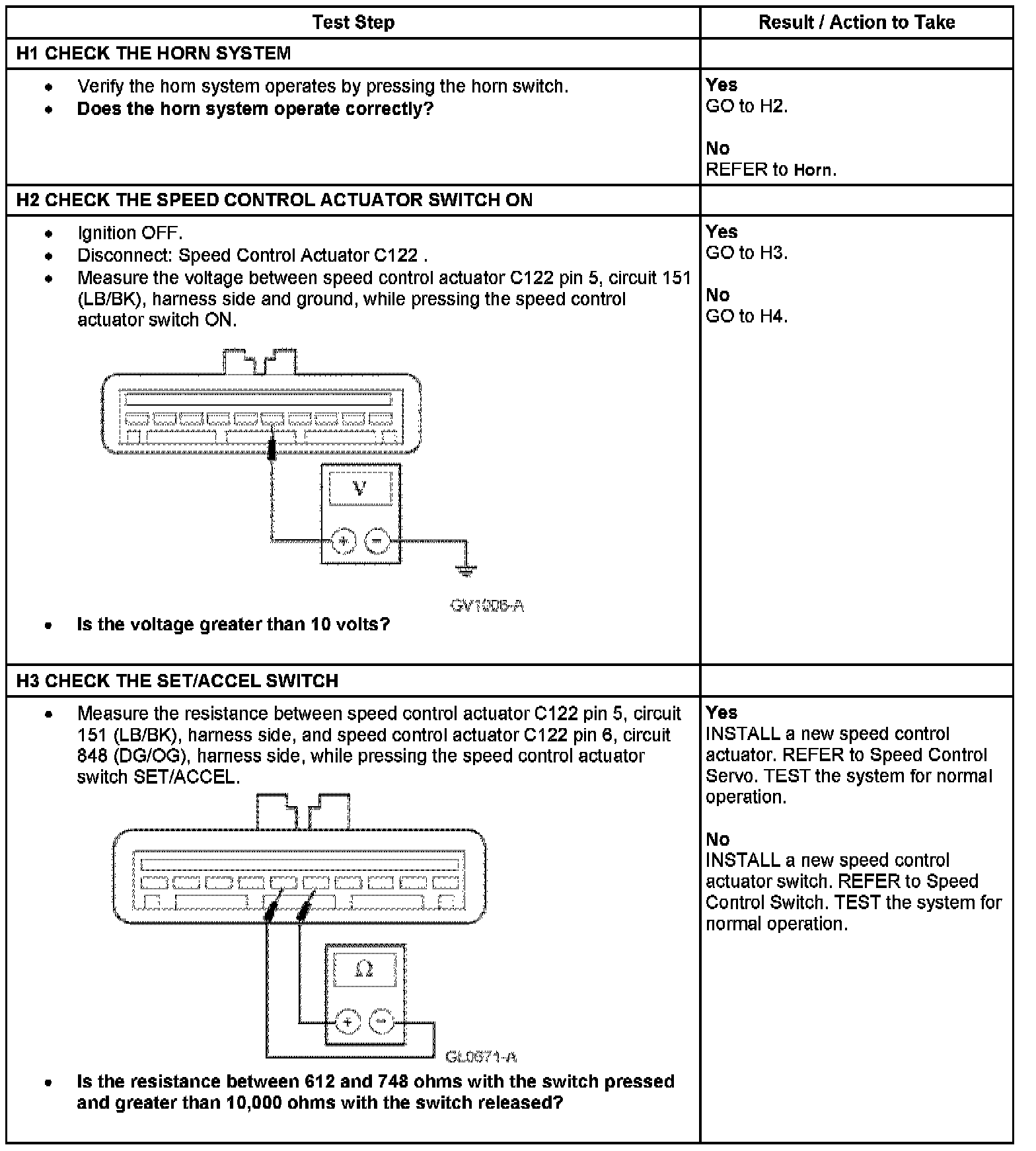 PINPOINT TEST H: THE SPEED CONTROL IS INOPERATIVE - NO DTC's