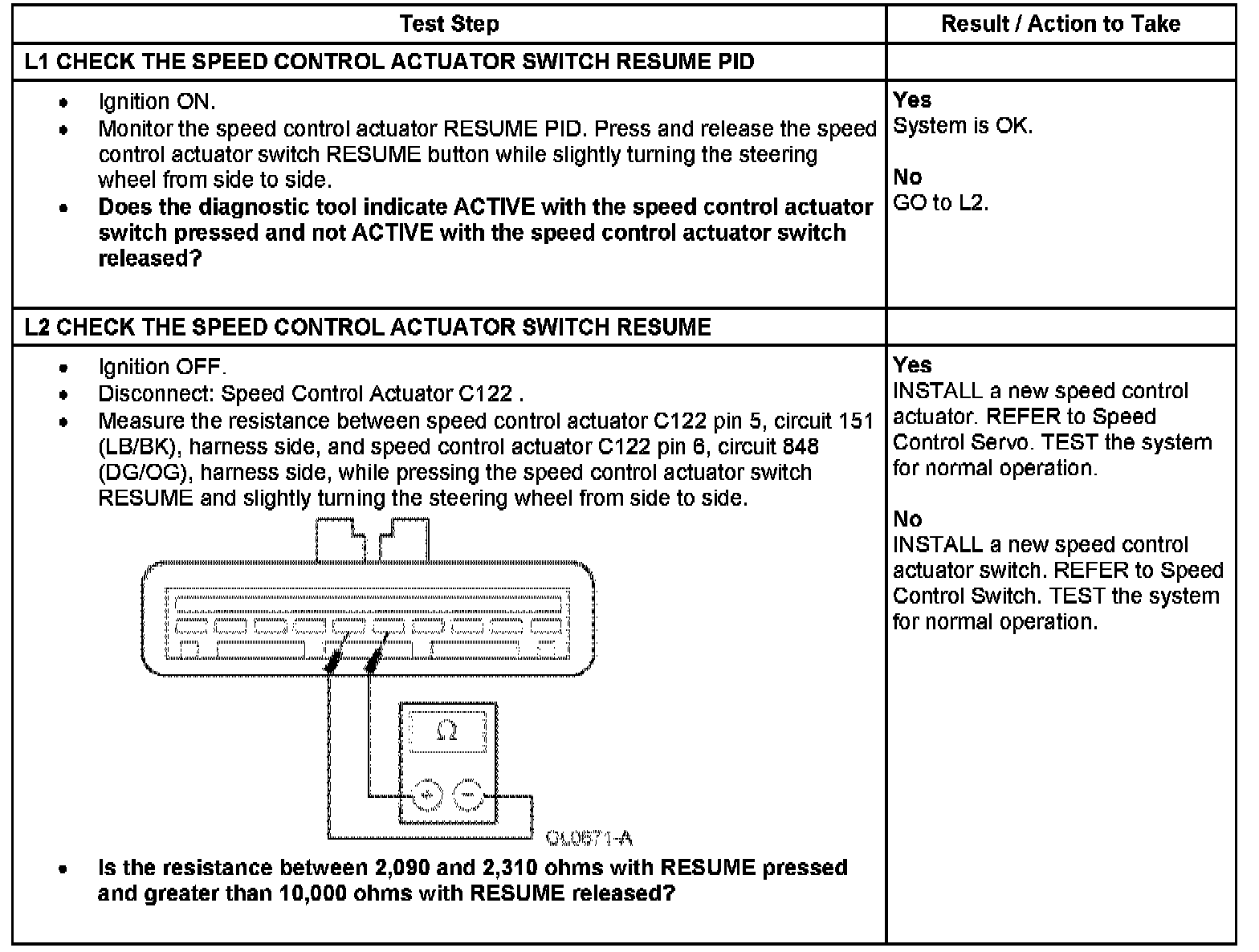 PINPOINT TEST L: THE SPEED CONTROL SWITCH IS INOPERATIVE - RESUME