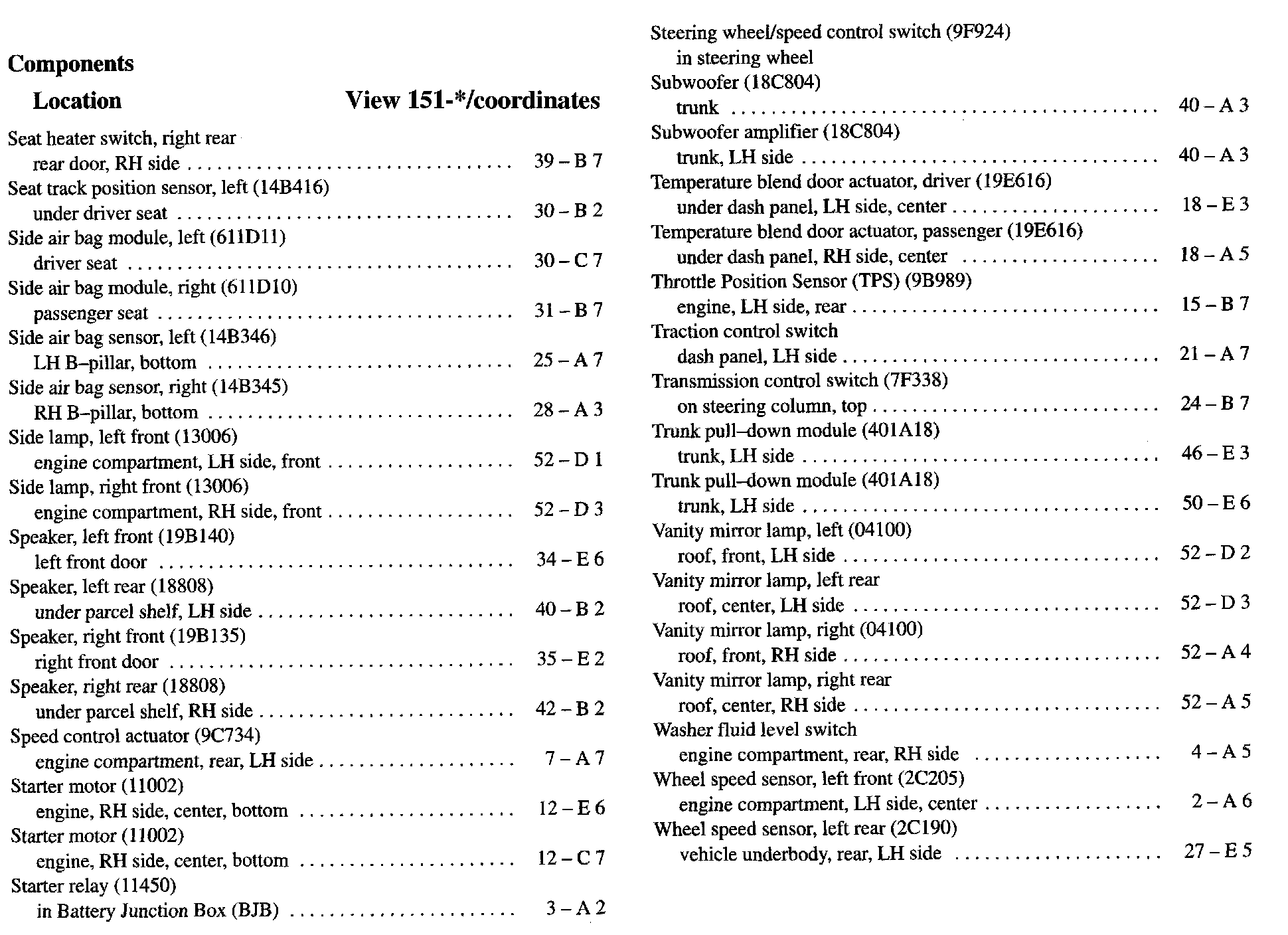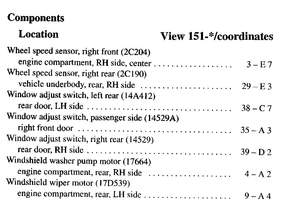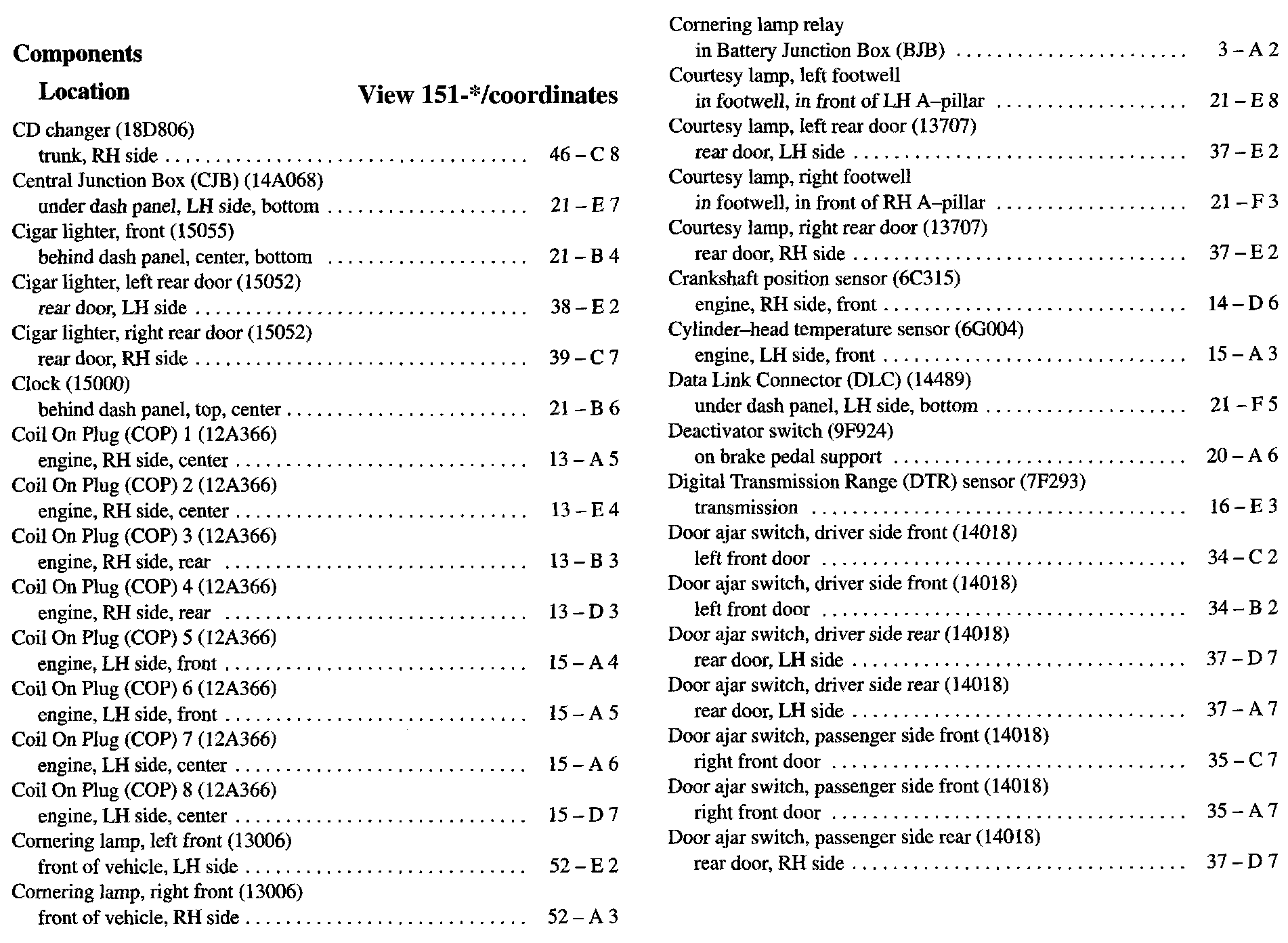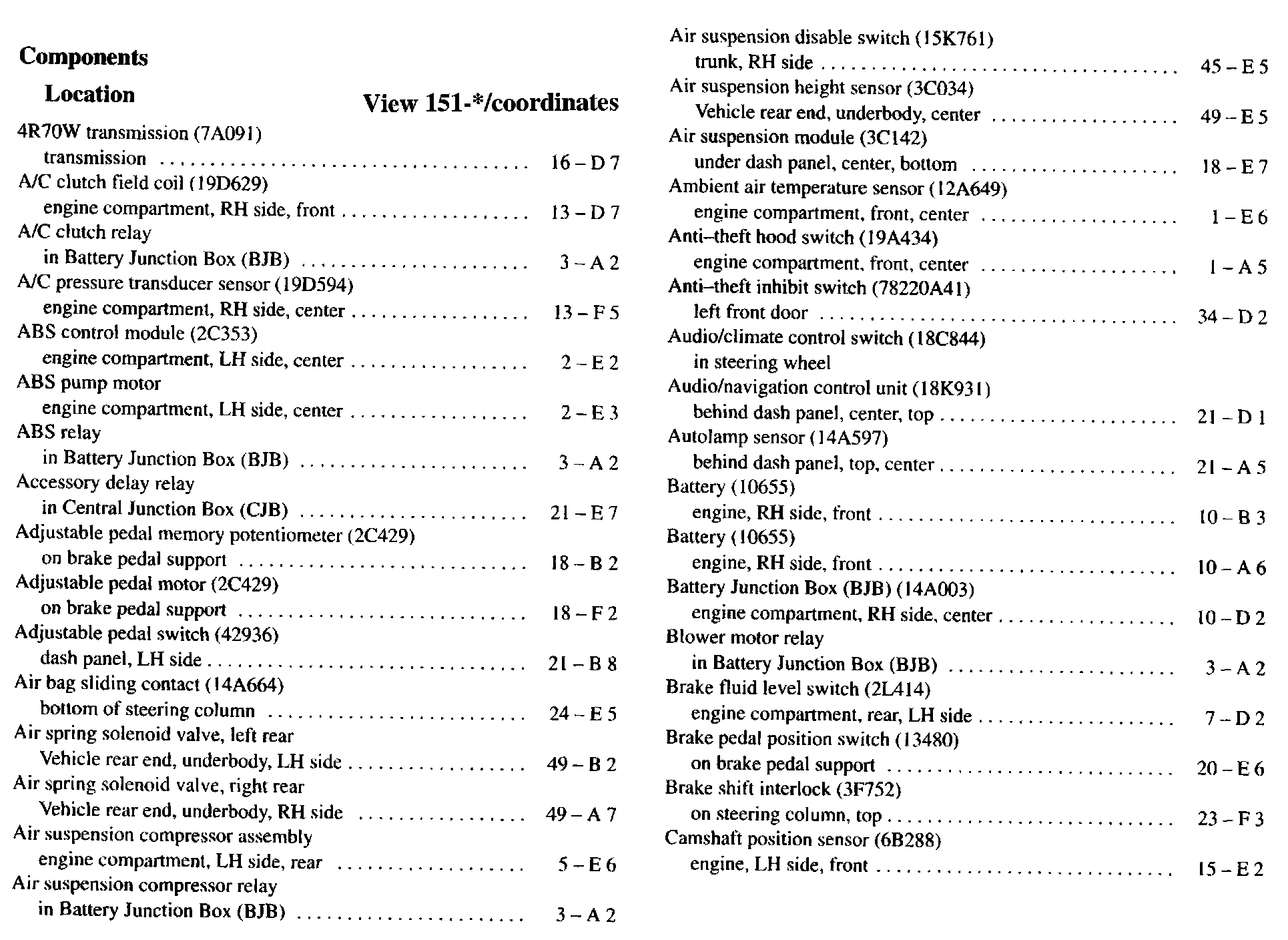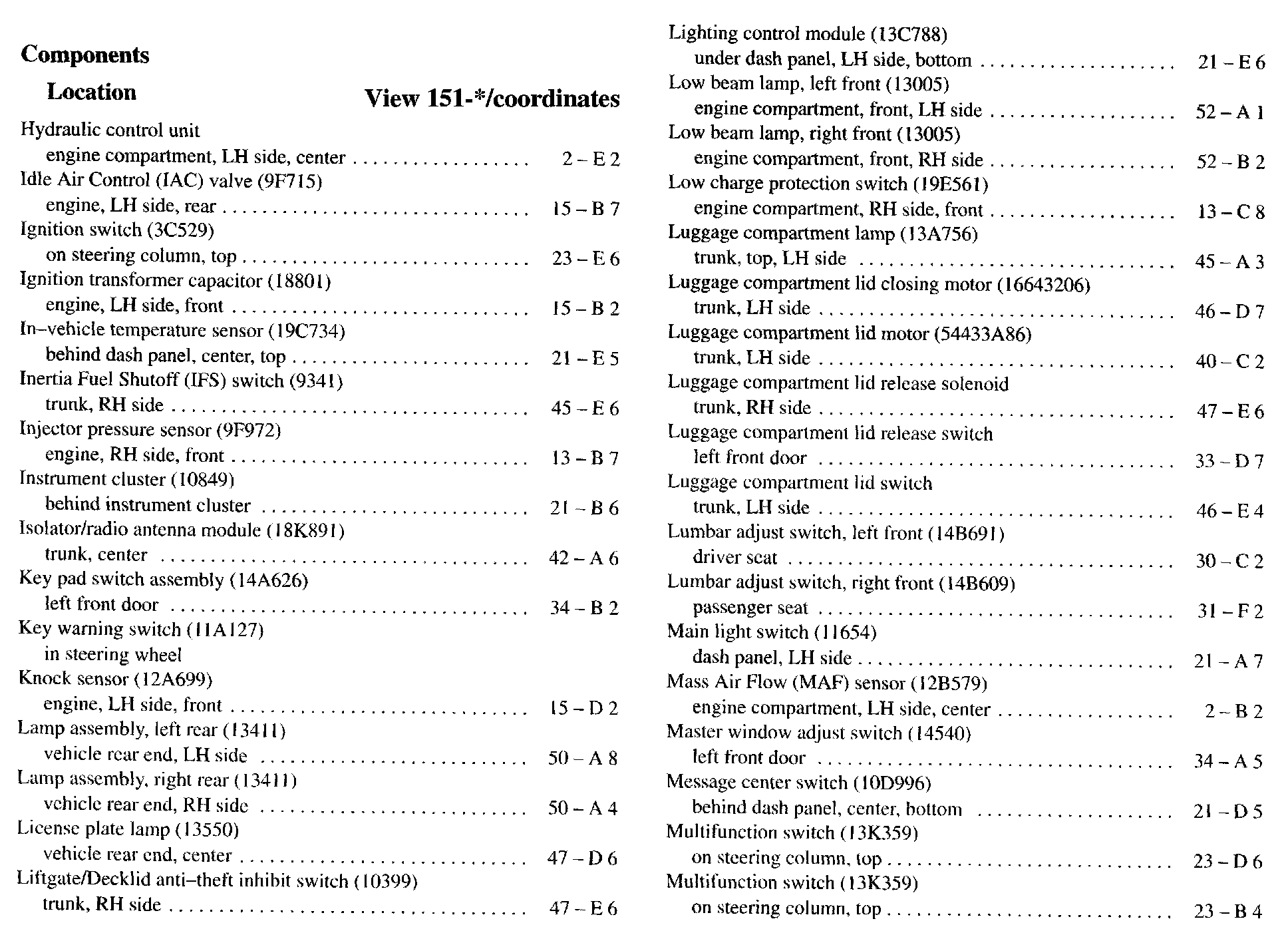 Component Location Index