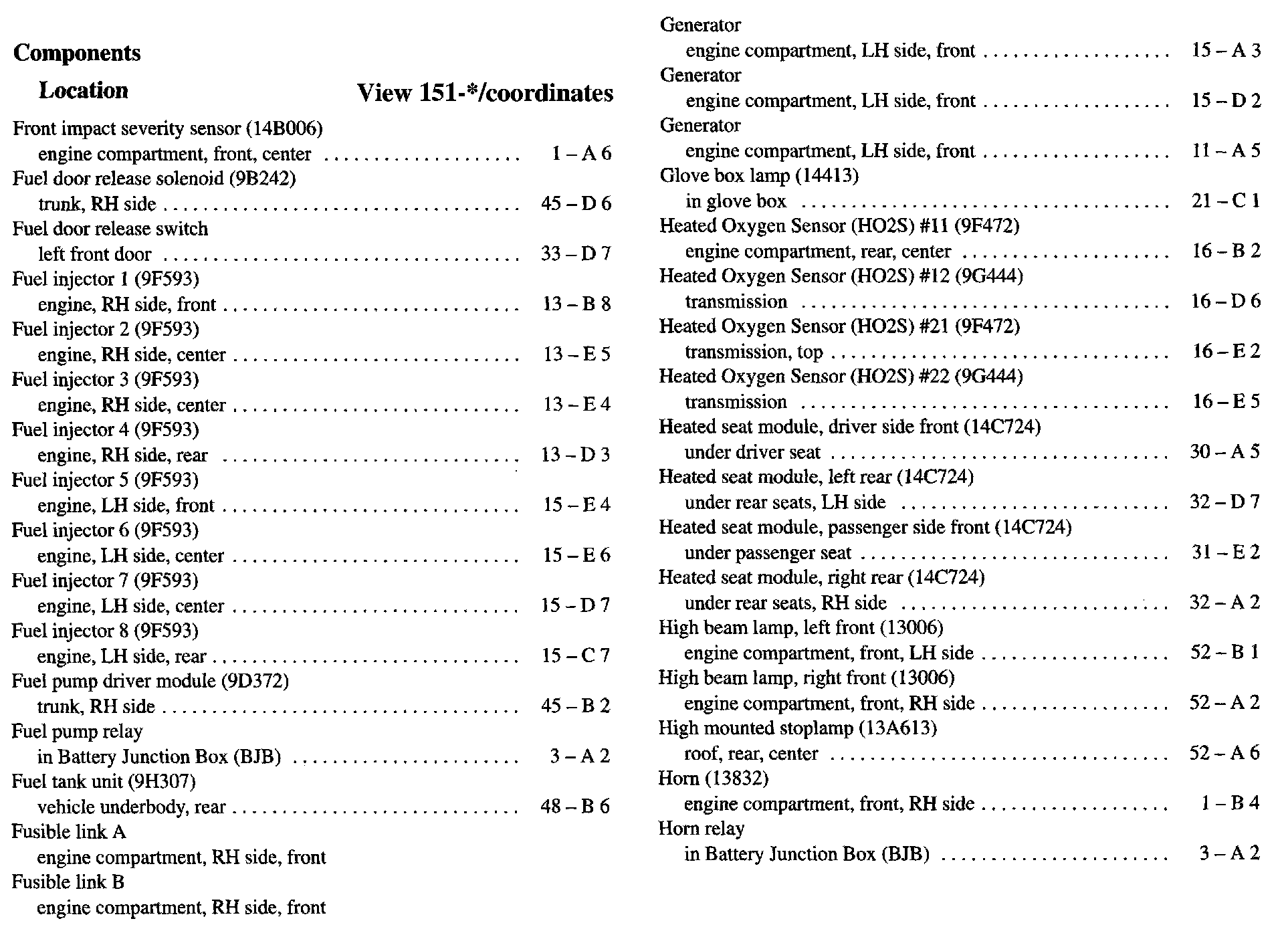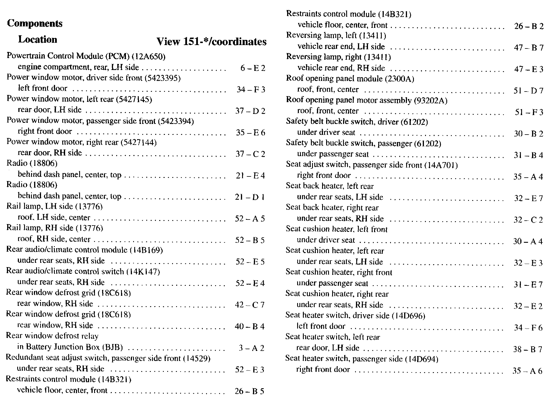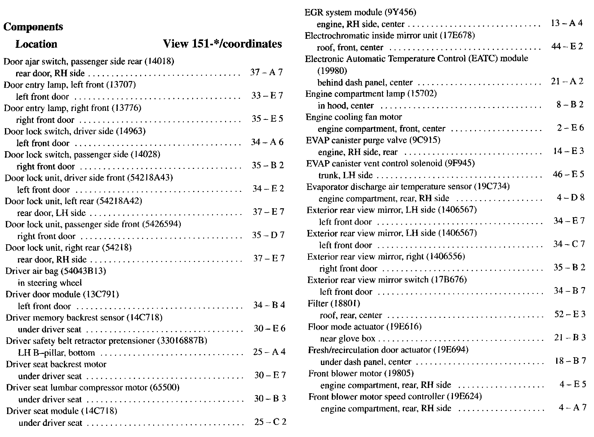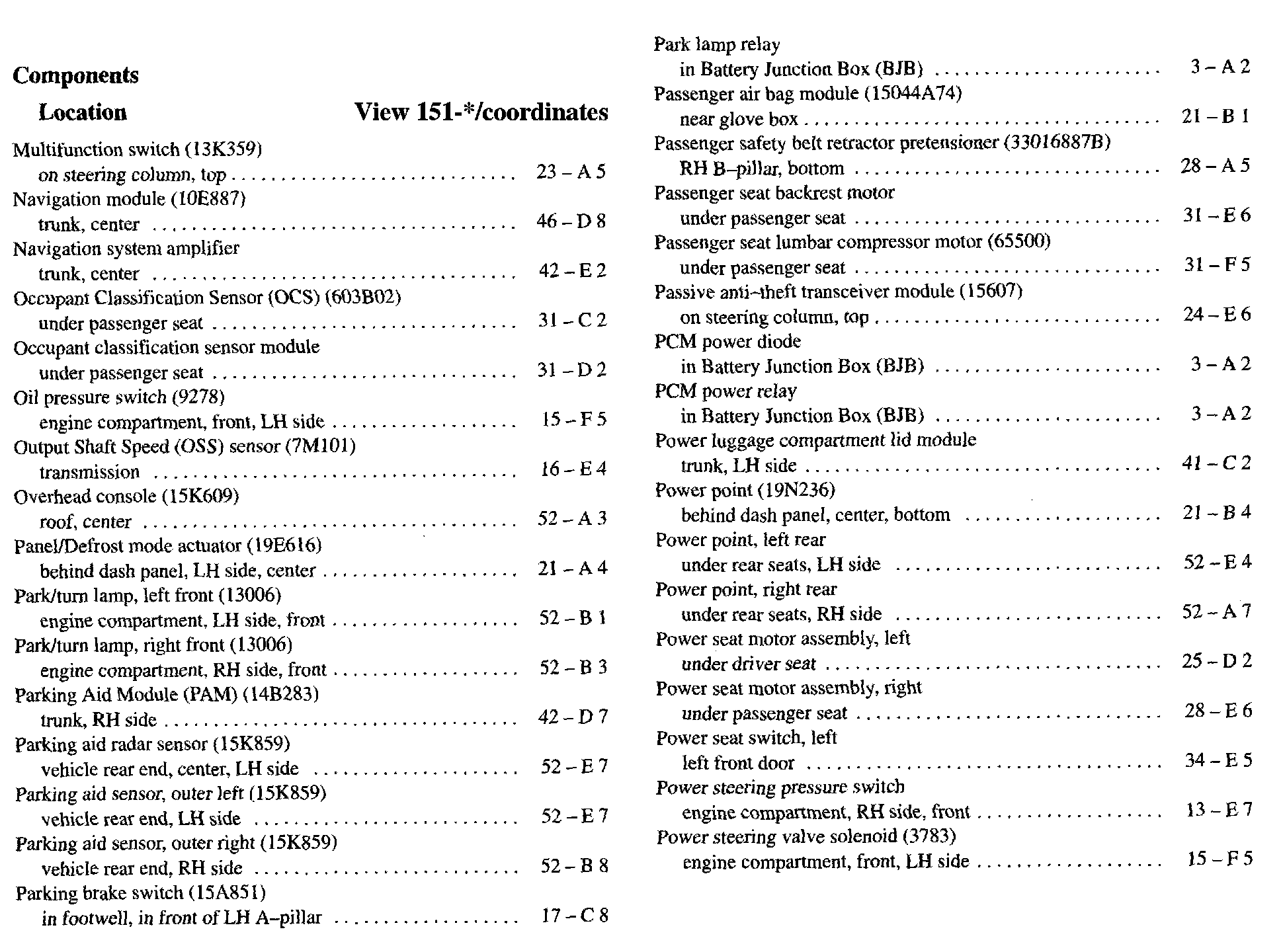 Component Location Index
