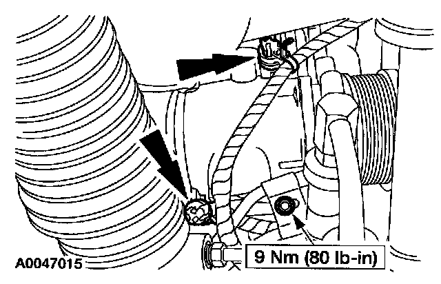NOTE: Installation of a new suction accumulator is not required when repairing the air conditioning system, except when there is physical evidence of contamination from a failed A/C compressor or damage to the suction accumulator.