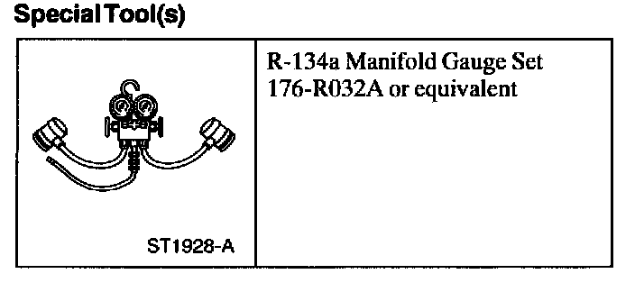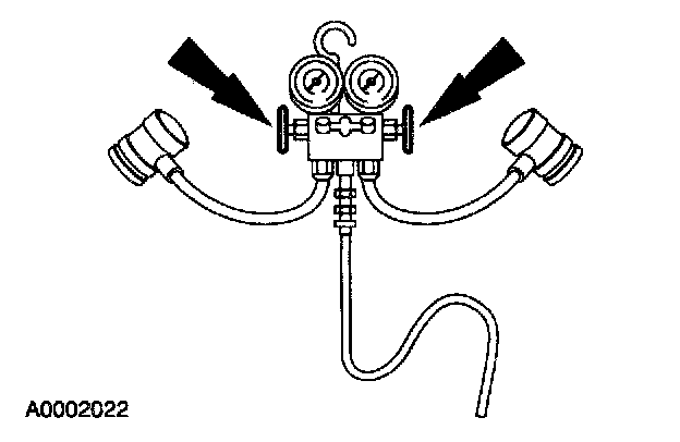 1. Turn both valves on the R-134a Manifold Gauge Set clockwise to close the low- and high-pressure hoses to the center manifold and center hose.