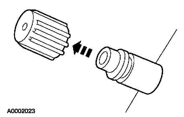 2. Remove the A/C charging valve cap from the low-pressure service gauge port valve.