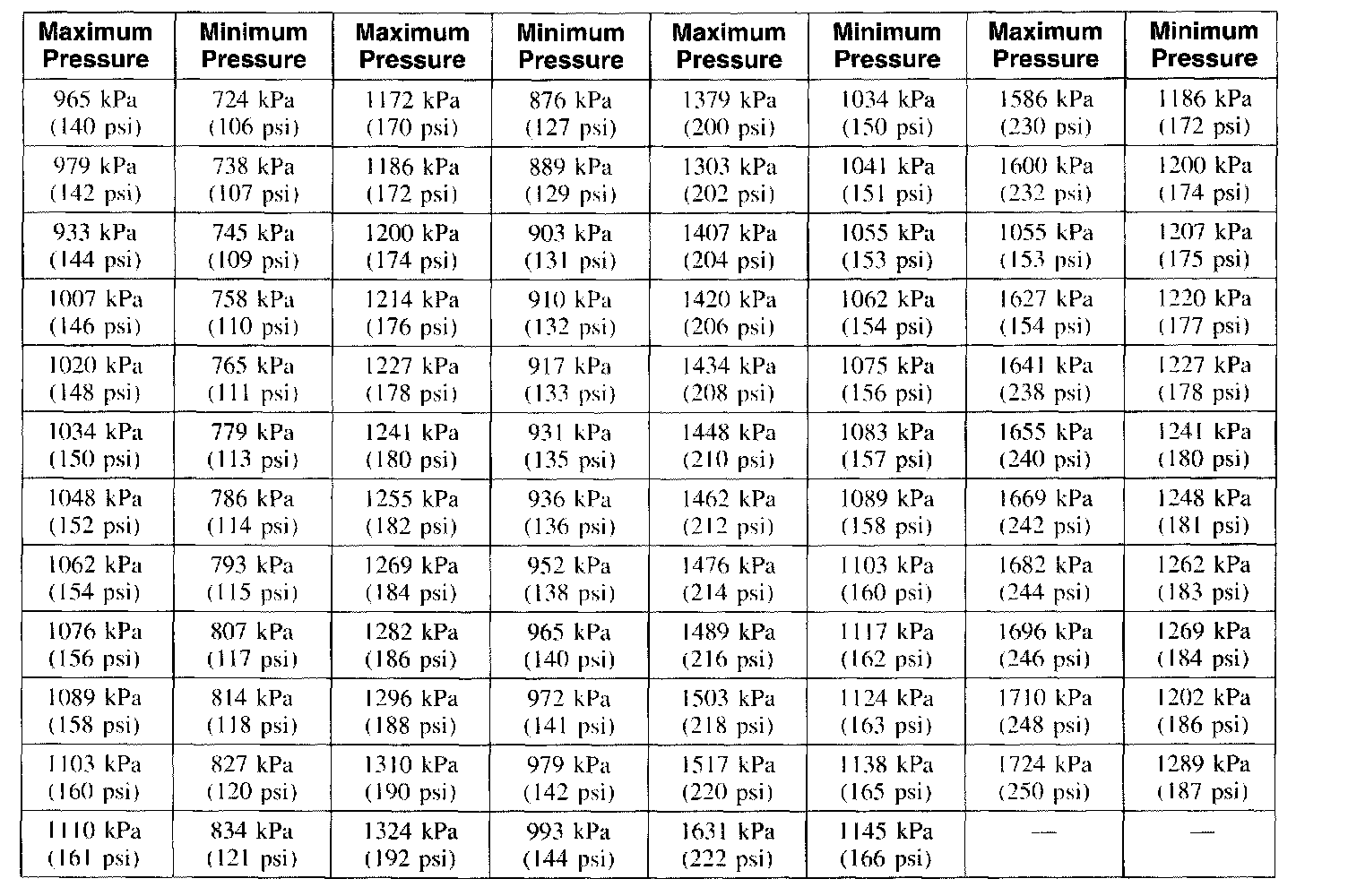 Compression Pressure Limit Chart
