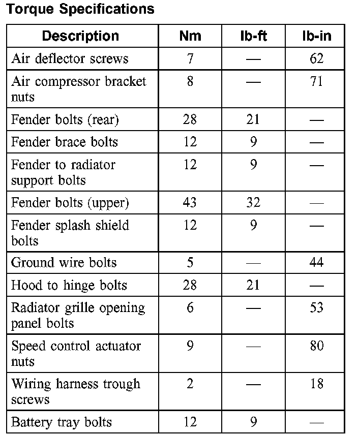 Torque Specifications: