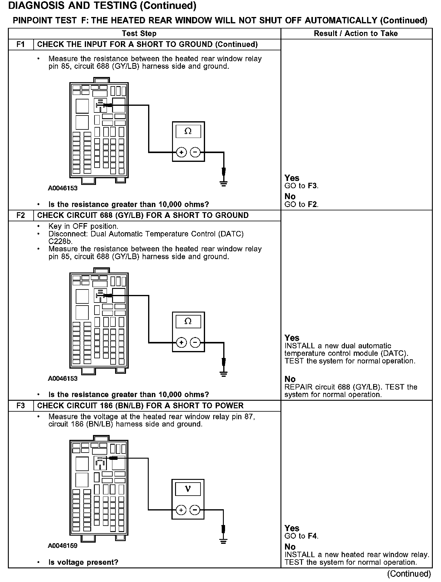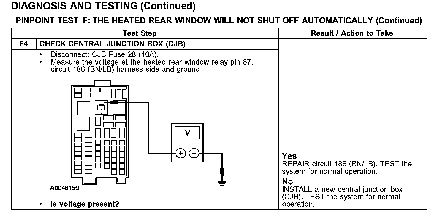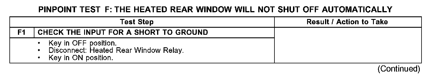 PINPOINT TEST F: THE HEATED REAR WINDOW WILL NOT SHUT OFF AUTOMATICALLY