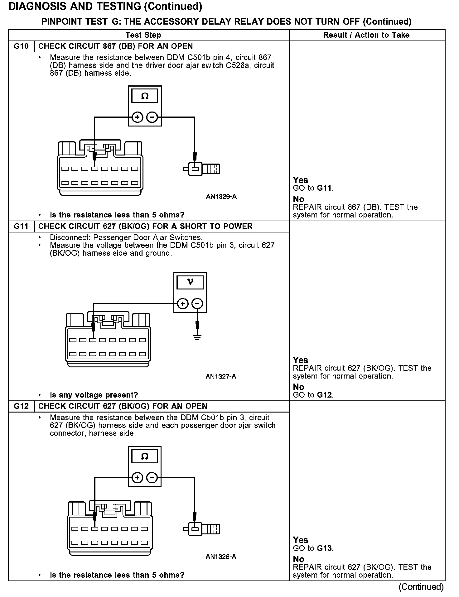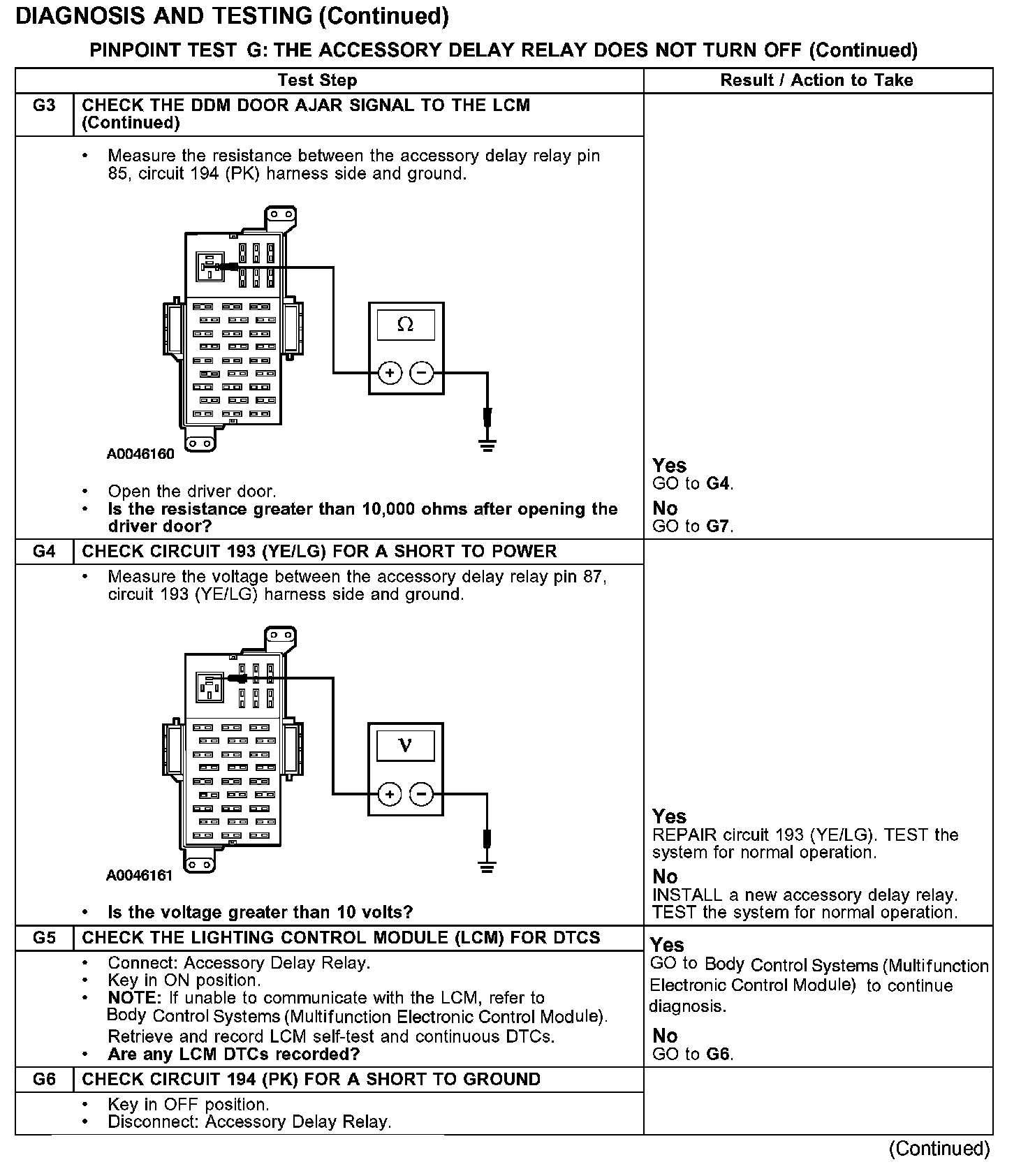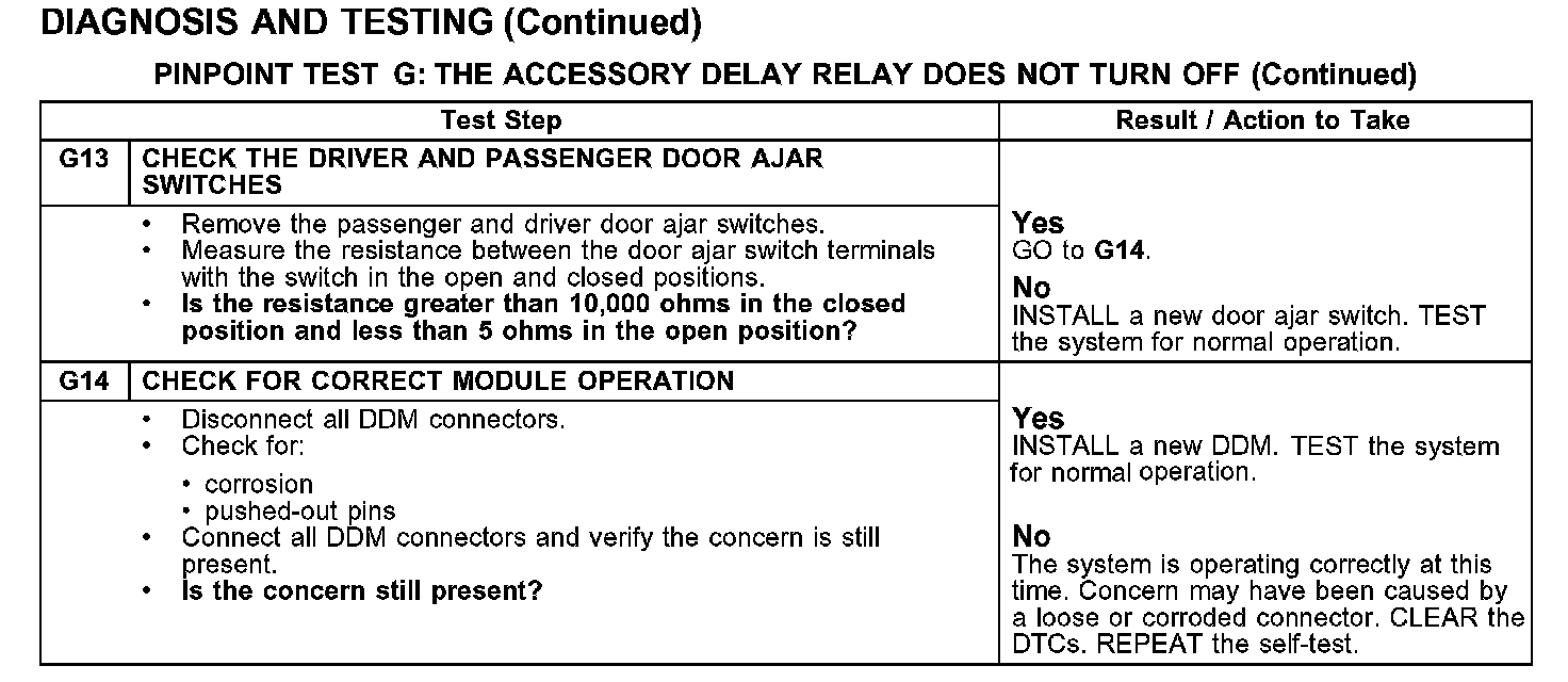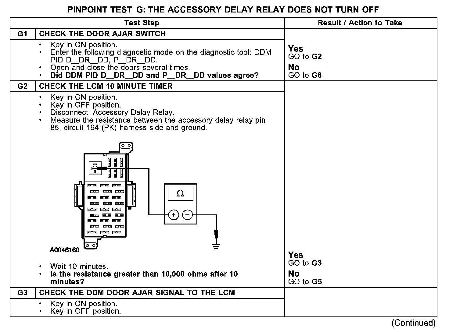 PINPOINT TEST G: THE ACCESSORY DELAY RELAY DOES NOT TURN OFF