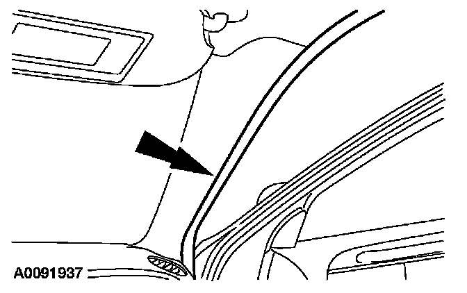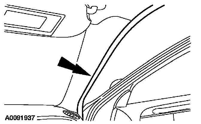 6. Partially lower the front portion of the headliner and block with a suitable material.