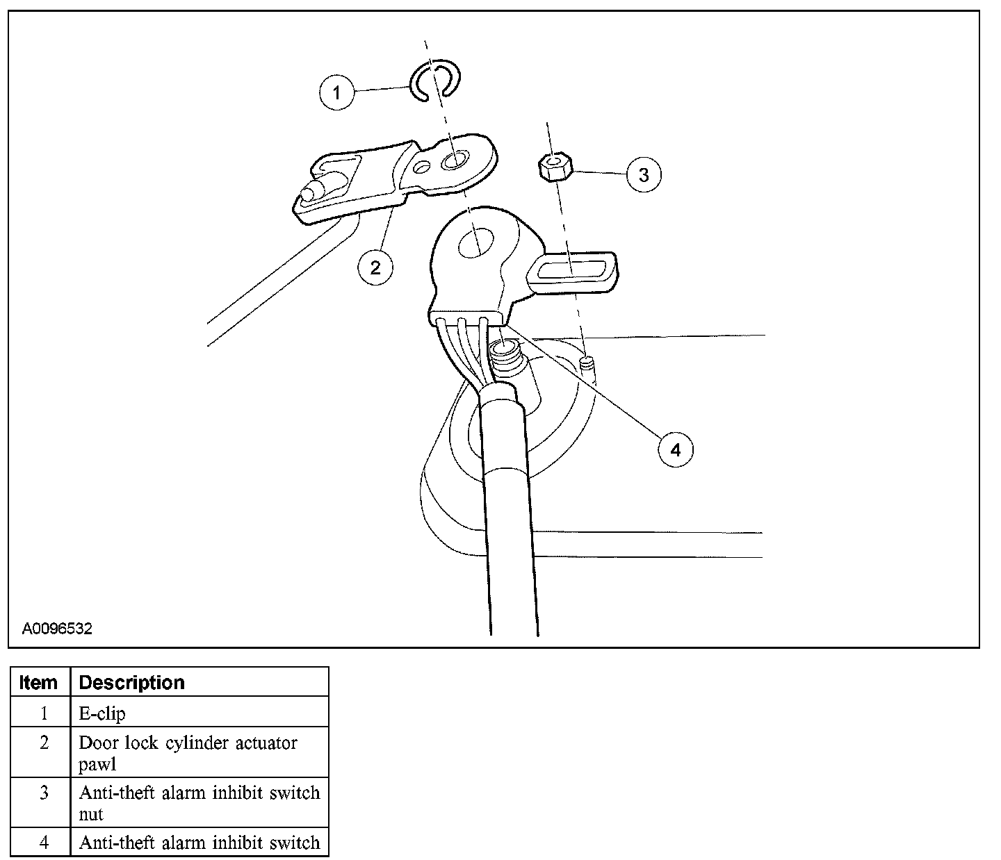 5. Remove the nut and the anti-theft alarm inhibit switch.