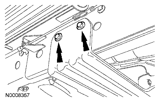 5. Remove the screws and the plastic shield on the right side of the crossmember.