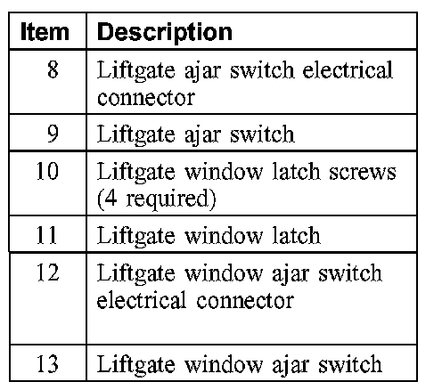 LIFTGATE HANDLE, LOCK AND LATCH - EXPLODED VIEW