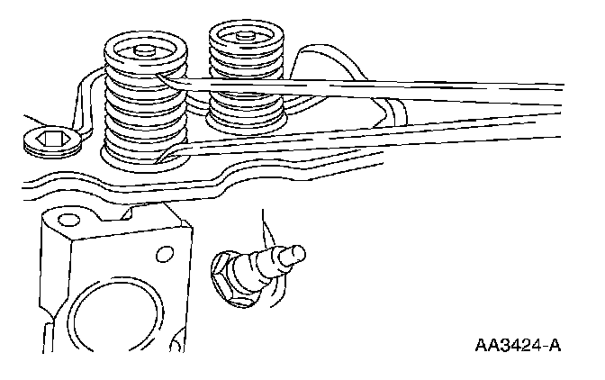 ^ Turn the valve spring and observe the space between the top of the valve spring and the square. Install a new valve spring if out of square.