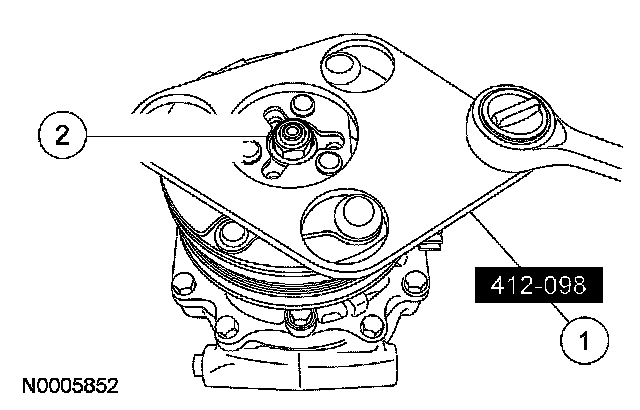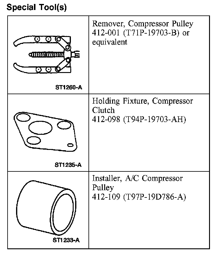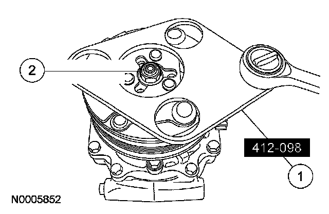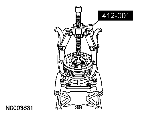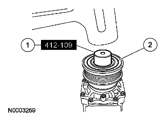 6. CAUTION: Do not use air tools. Damage to the A/C clutch pulley or A/C compressor may result.