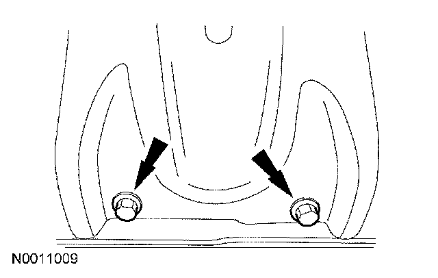 11. Remove the transmission nuts and the transmission crossmember.