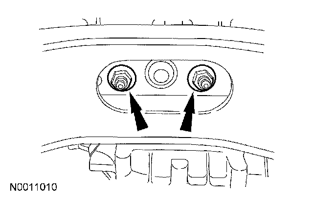 Remove and discard the catalytic converter-to-exhaust manifold stud nuts.