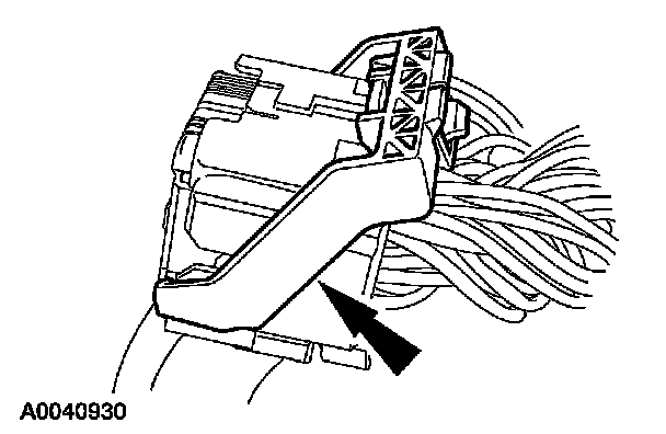 2 Using the connector position assurance lever, pivot it toward the RCM, drawing the connector into the RCM. Make sure the thumb tab is engaged to the retainer on the RCM and locked in place.