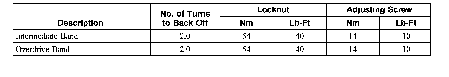 Band Adjustment and Torque Chart