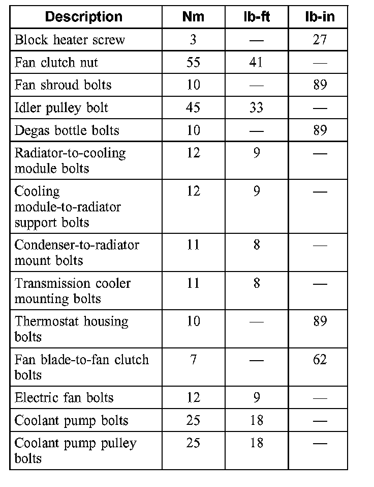 Torque Specifications:
