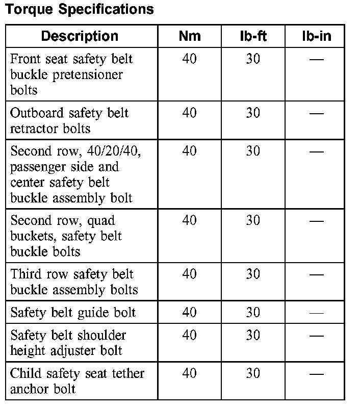 Torque Specifications: