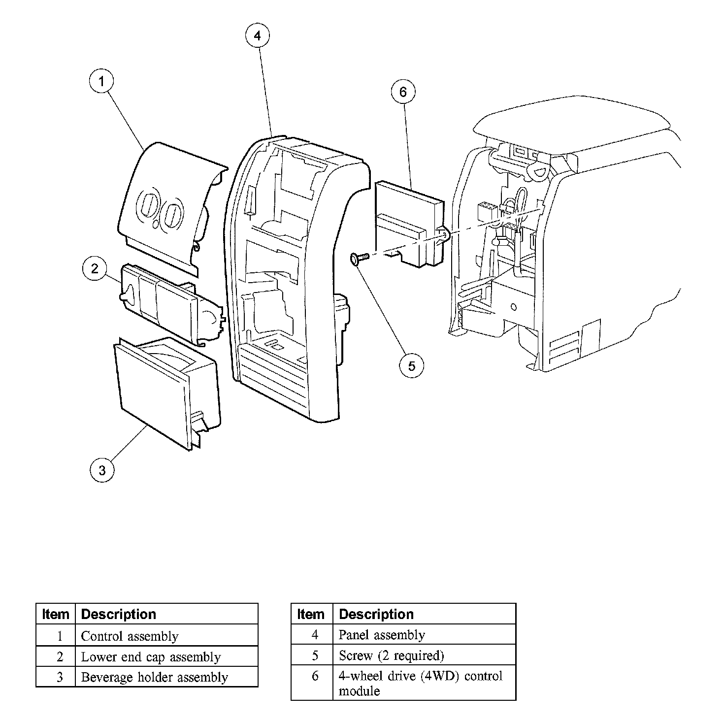 8. Remove the 4-wheel drive (4WD) control module and disconnect the electrical connectors.