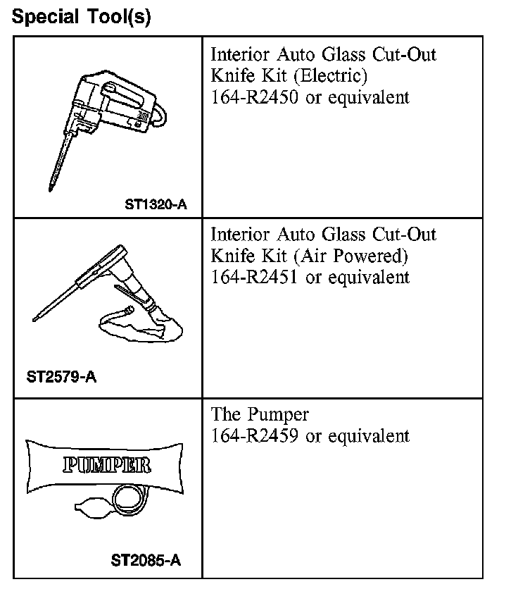 NOTE: Lubricate the urethane adhesive with water to aid the special tool when cutting.