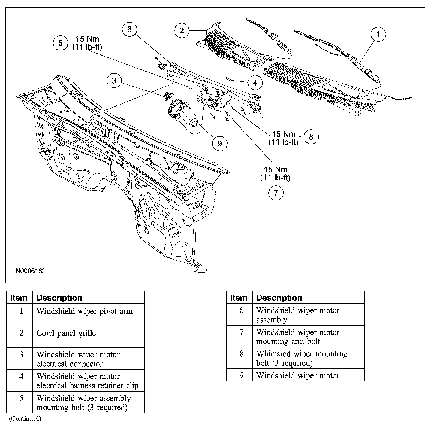 Wiper and Washer System - Exploded View, Front
