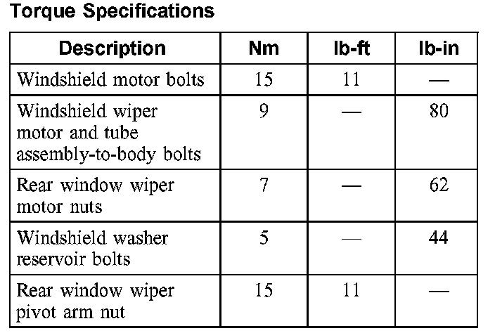 Wiper and Washer Systems: Specifications
