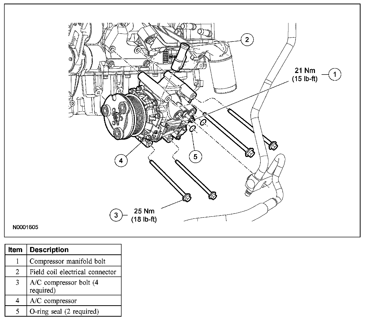 - If installing a new A/C compressor, the A/C clutch disc and hub, A/C compressor pulley and A/C clutch field coil (19D798) must be inspected and transferred from the old unit to the new unit if suitable for reuse.