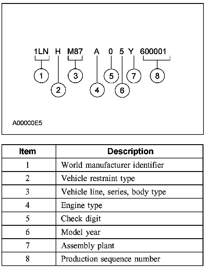 IDENTIFICATION CODESVehicle Identification Number (VIN) Locator: