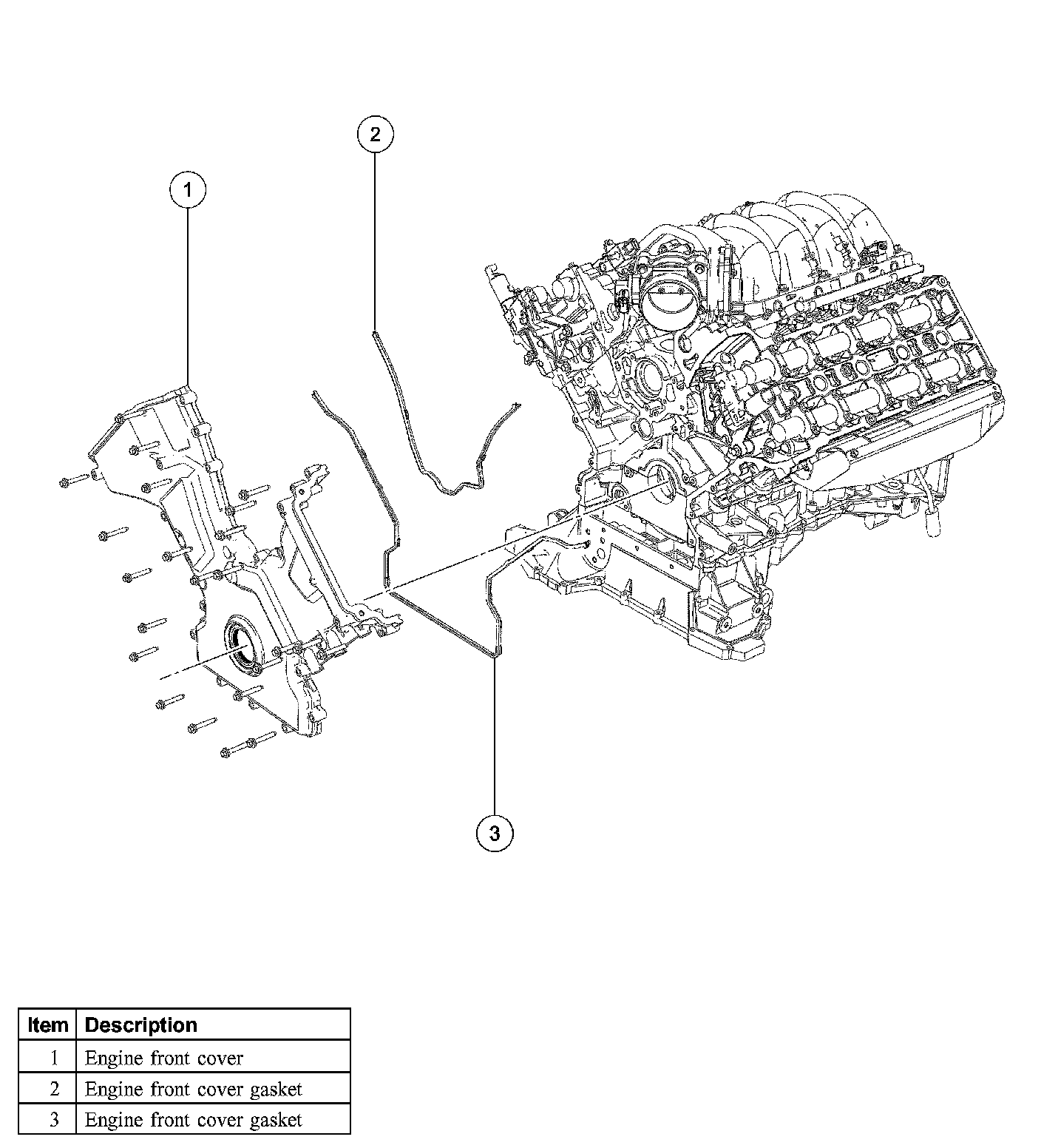 ^ Position the engine front cover on the cylinder block.